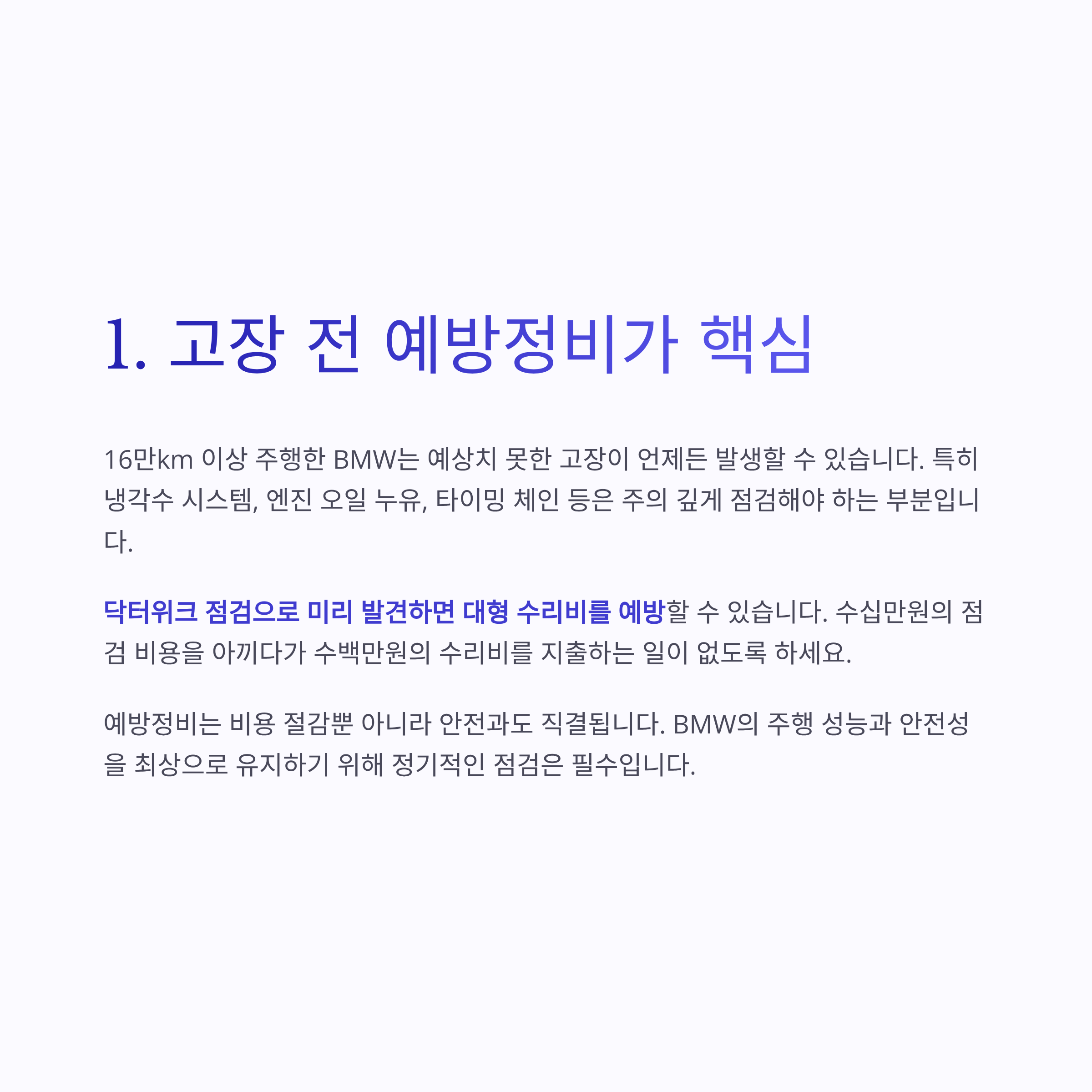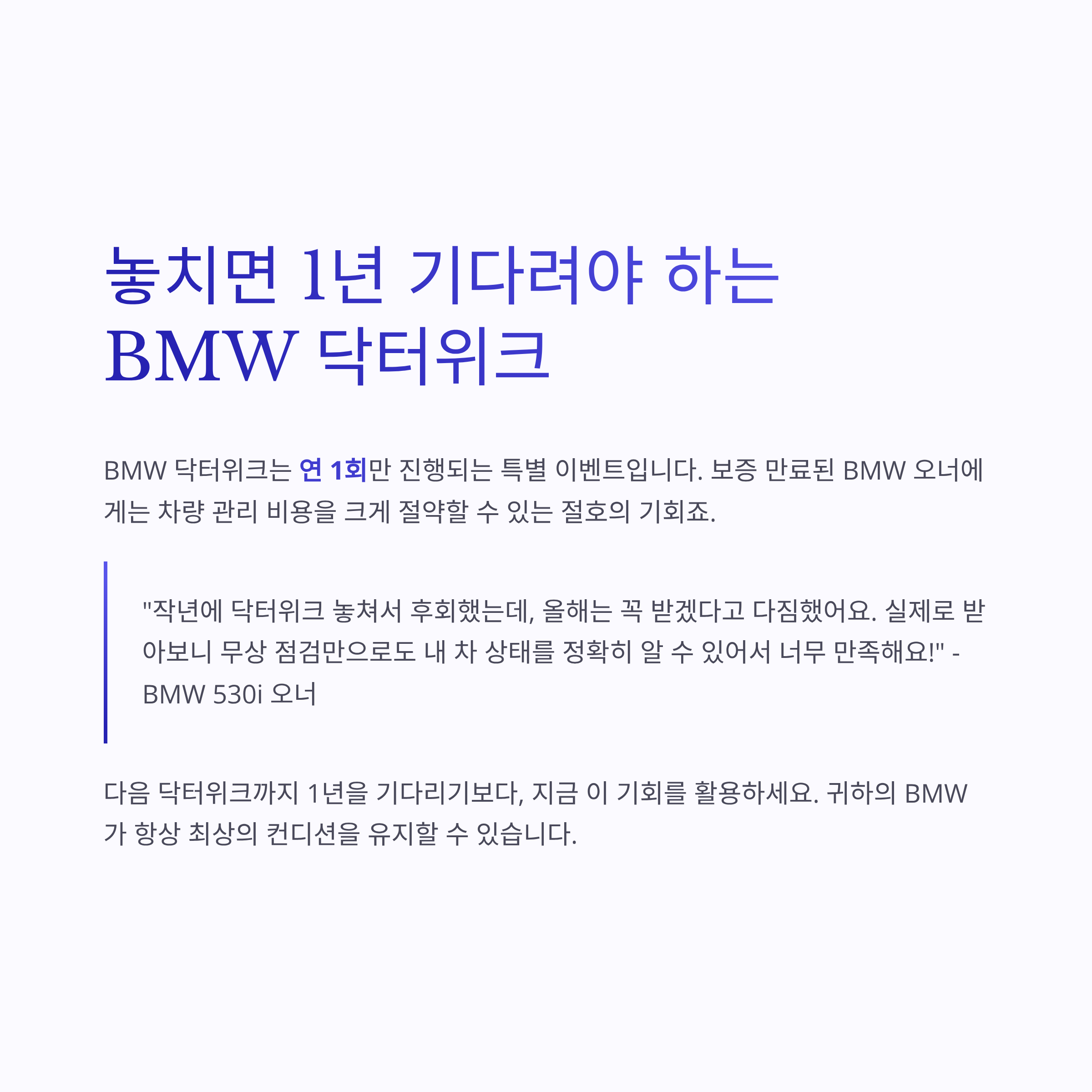 BMW 닥터위크, 보증 만료된 차량 오너들의 필수 선택입니다.