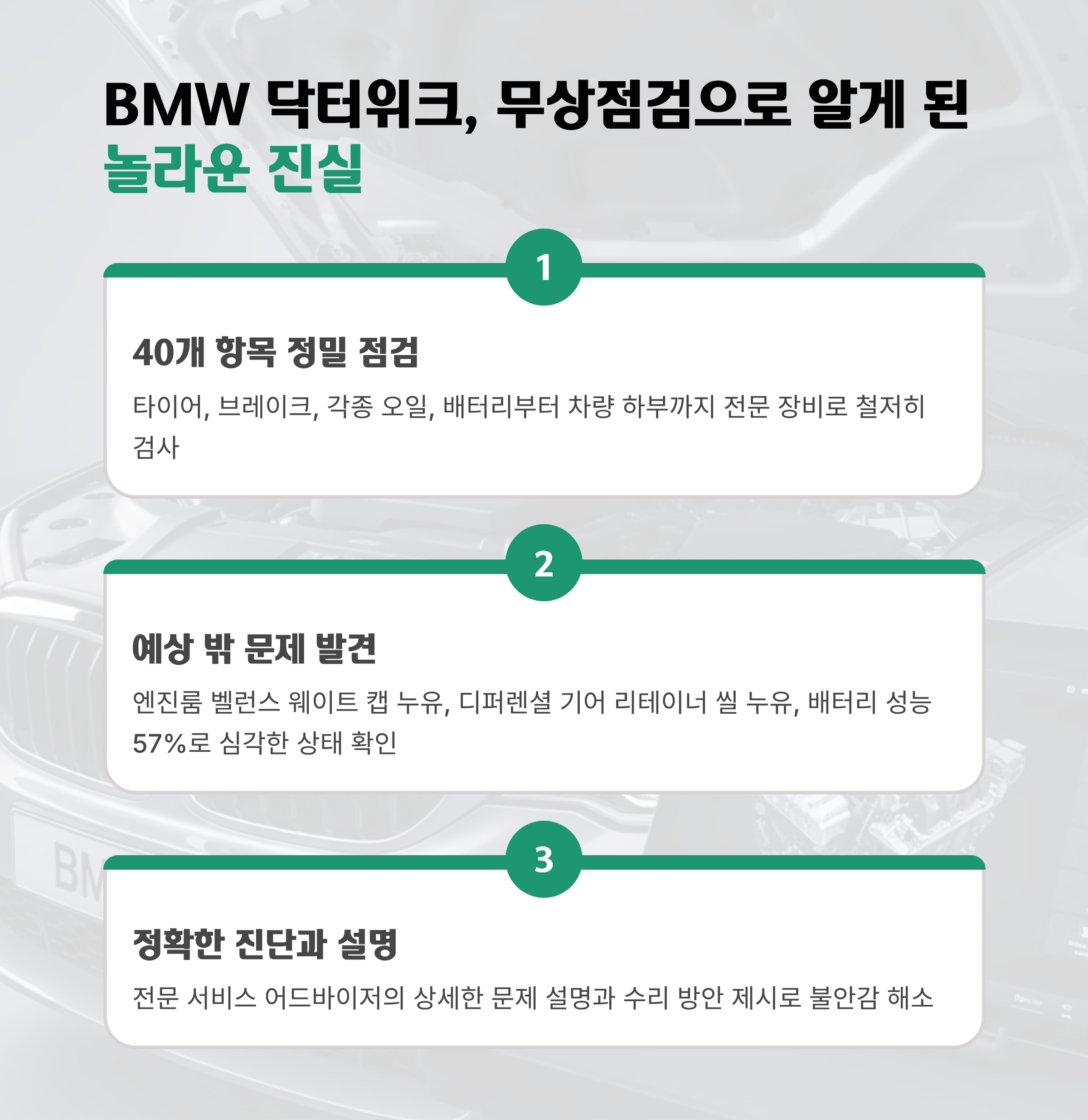 왜 지금이 BMW 점검의 최적기일까요? 최근 BMW 오너들 사이에서 입소문을 타고 있는 'BMW맛...