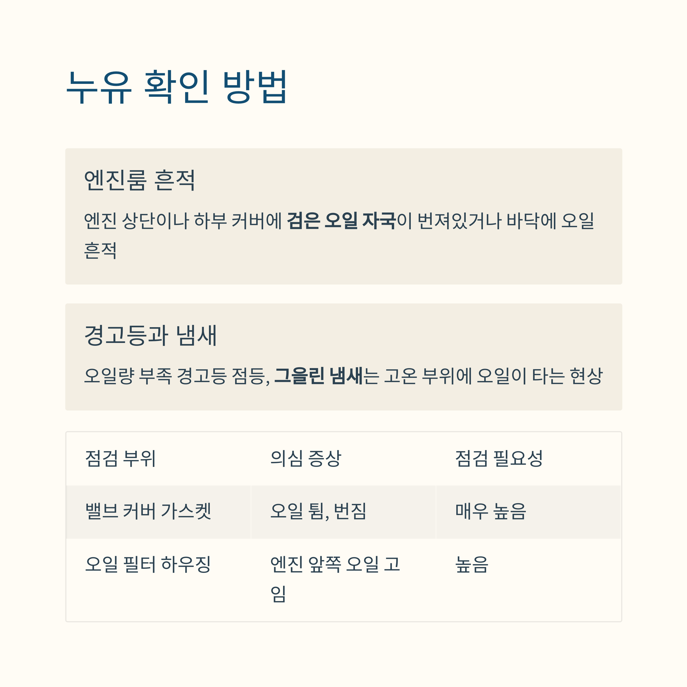 누유 증상 체크포인트, 이렇게 확인하세요