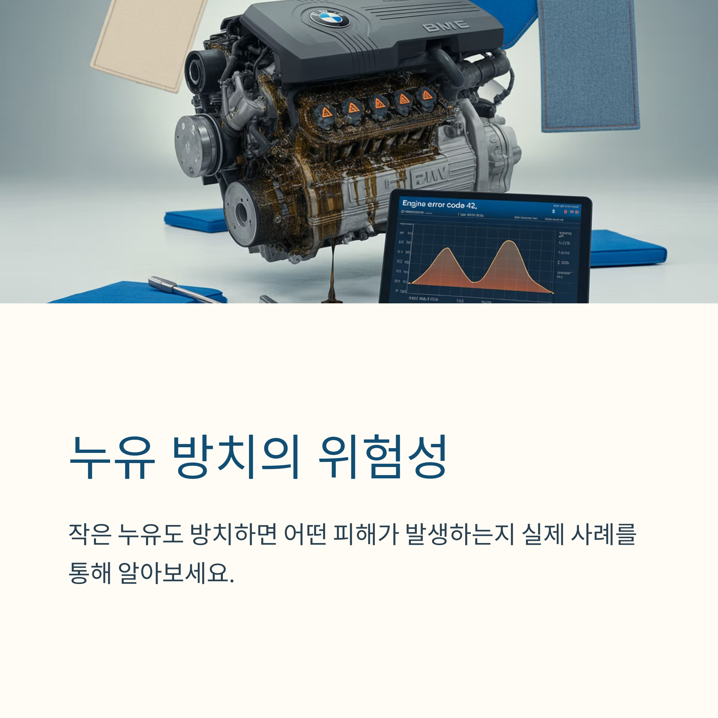 BMW 디젤 차량의 대표적인 고질병인 '엔진 누유'는 초기 대응만 잘해도 수백만 원의 수리비를 아낄 수 있습니다