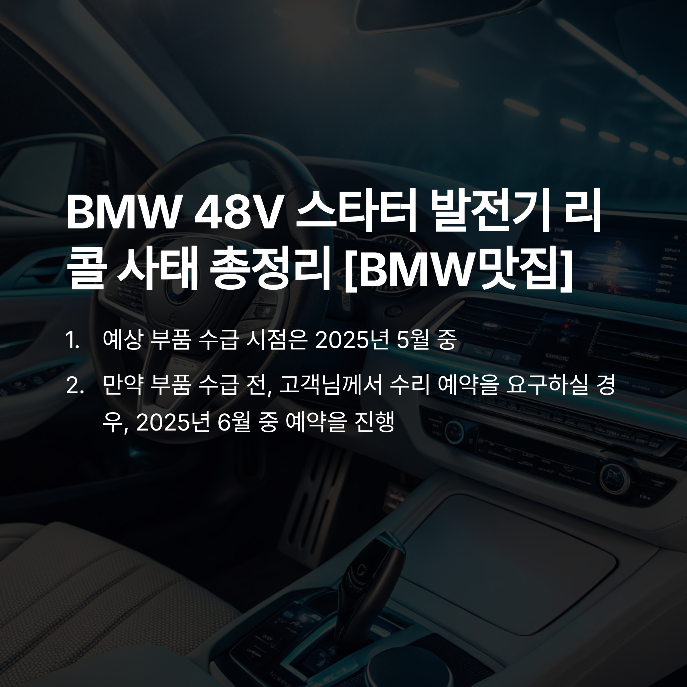 BMW가 최근 공개한 리콜 사유는 "48V 스타터 발전기"의 부품 결함입니다.