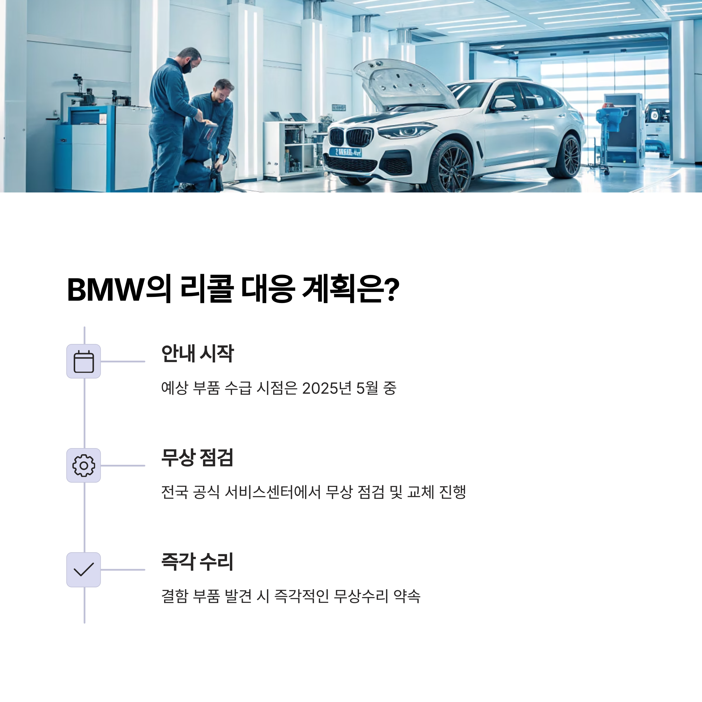 이번 BMW 리콜은 제조사의 책임이 명백하기 때문에, 모든 조치는 무상으로 제공됩니다.