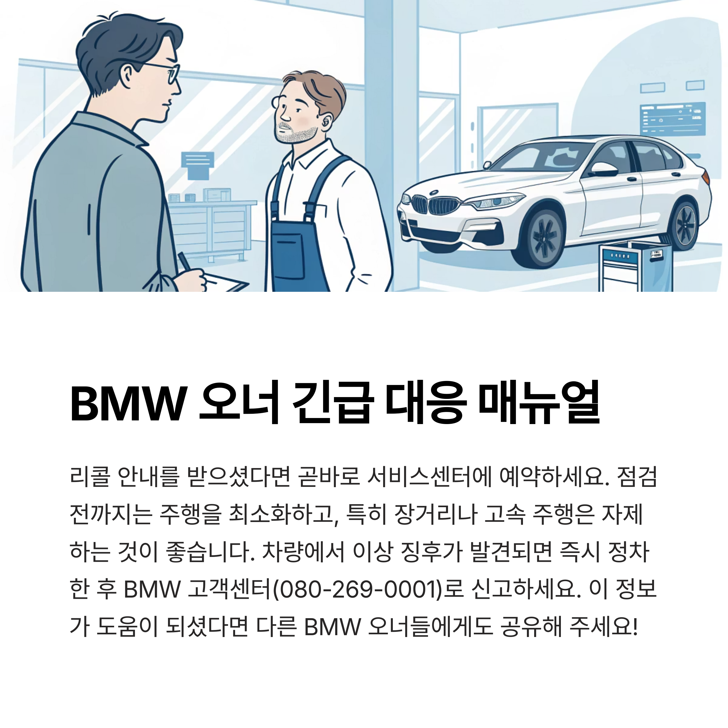 BMW는 고급 차량 브랜드이지만, 리콜 대응은 신속성과 투명성이 중요합니다.