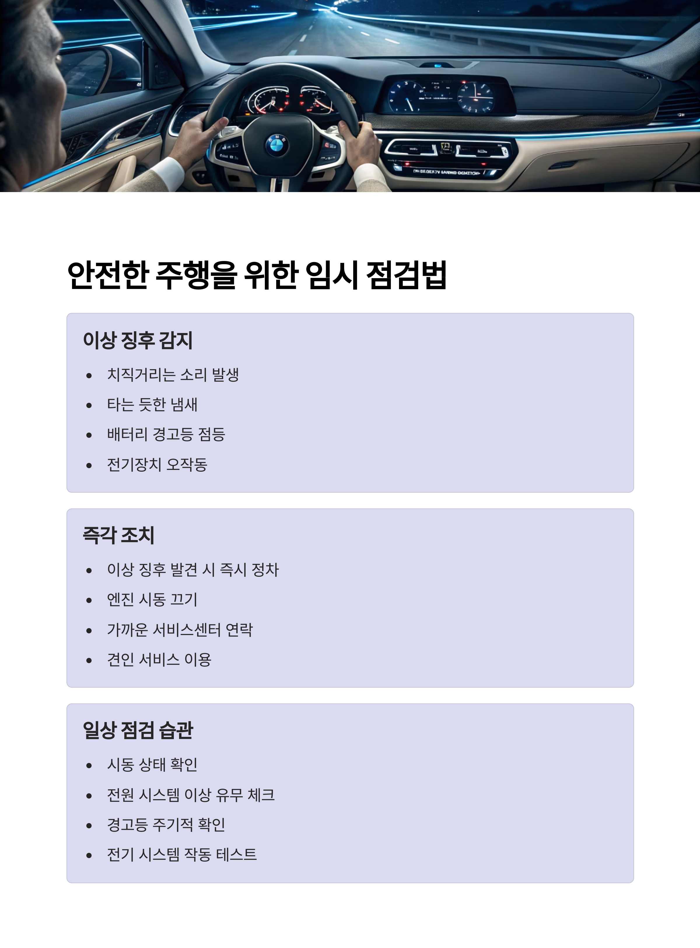 안전한 운전을 위한 임시 점검 방법
