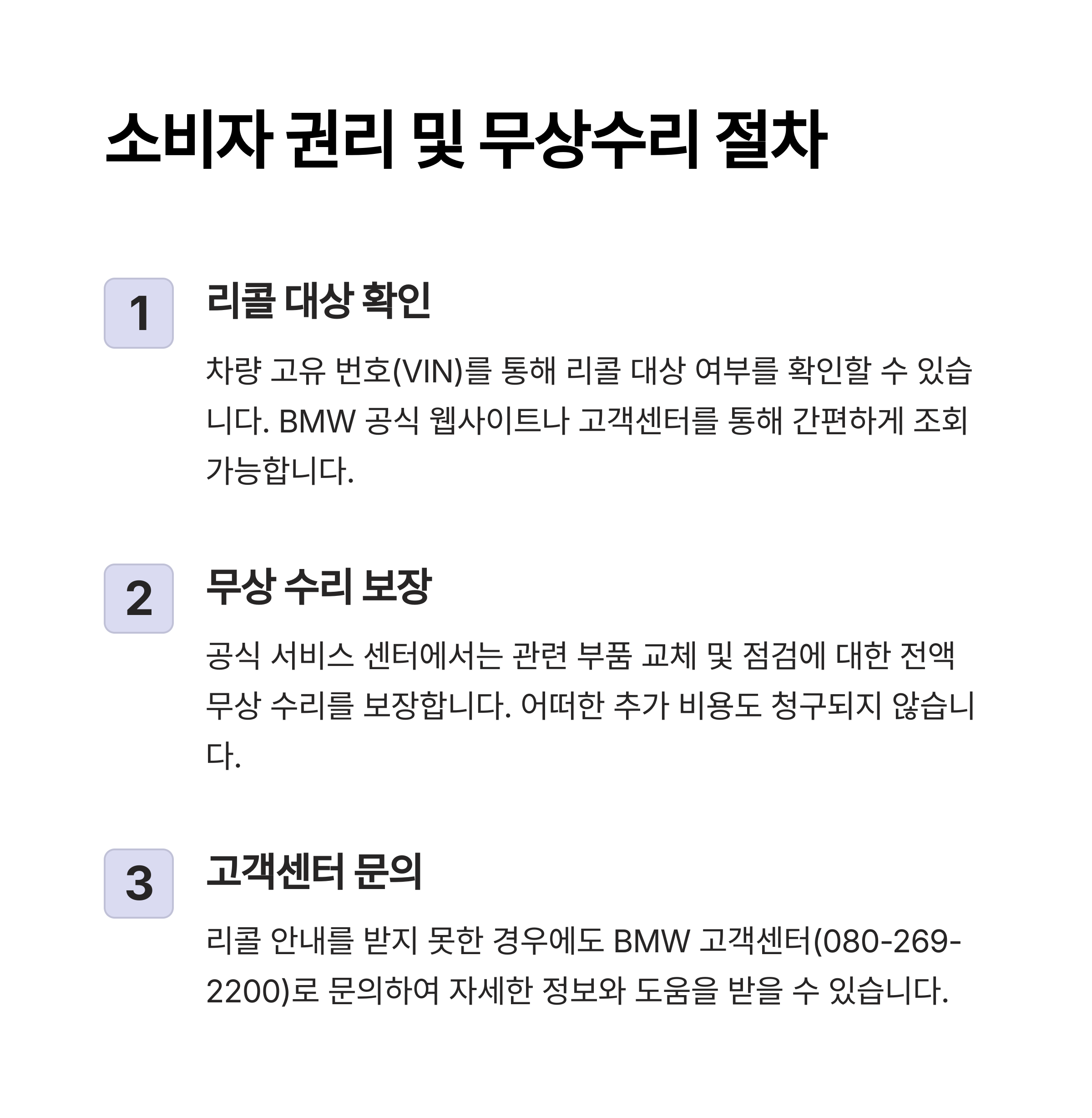 - 먼저, BMW 홈페이지 또는 딜러사를 통해 리콜 대상 여부를 확인합니다
