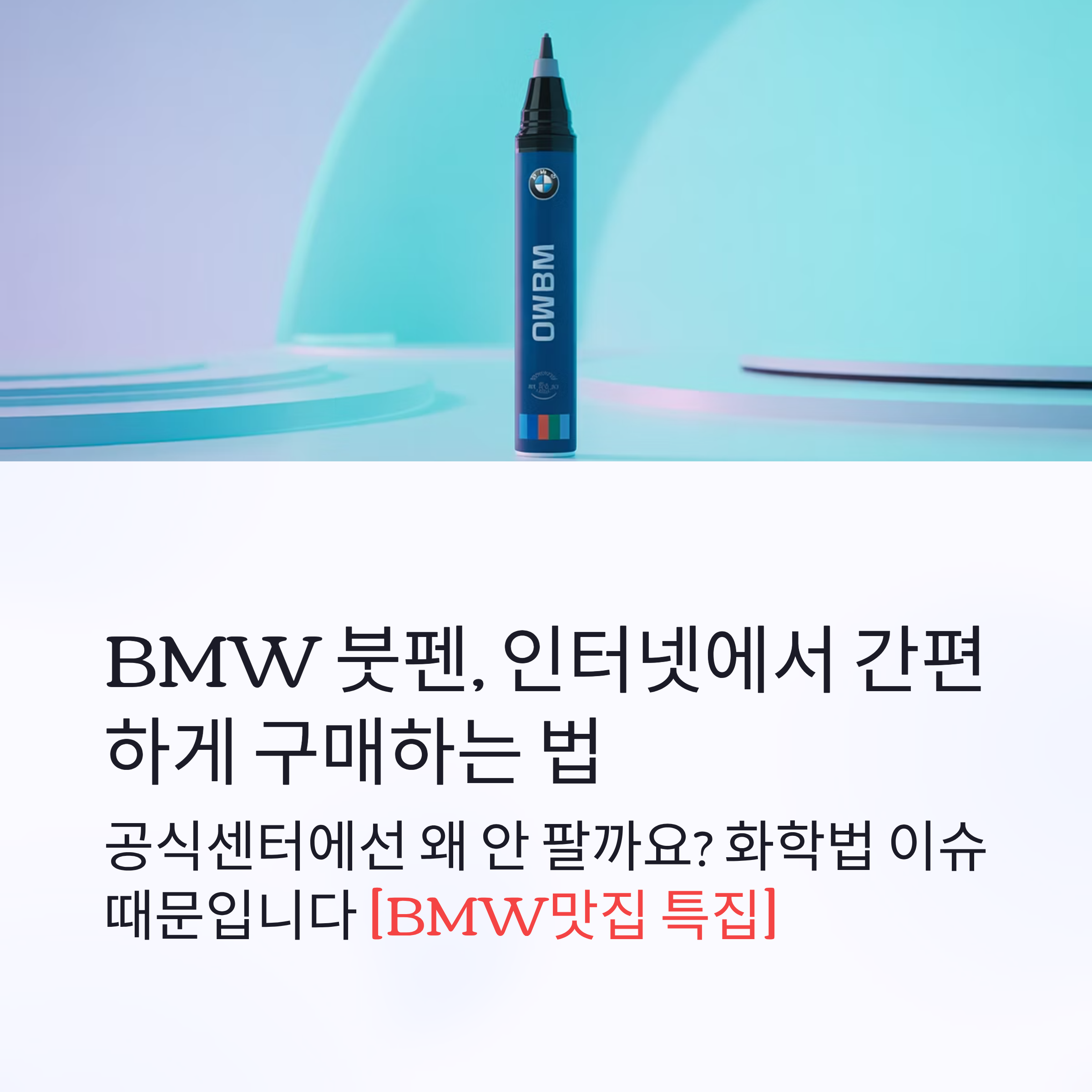 BMW 차량의 도장 보수에 유용한 붓펜, 최근에는 공식 센터가 아닌 온라인을 통해 구매하는 사례가 늘고 있습니다. 화학법 개정 이후 수입이 제한되면서 BMW 코리아 공식 센터에선 더 이상 붓펜을 공급하지 않게 되었기 때문인데요. 이 글에서는 BMW 붓펜을 인터넷에서 안전하게 구매하는 방법과 유의할 점들을 정리해드립니다.
