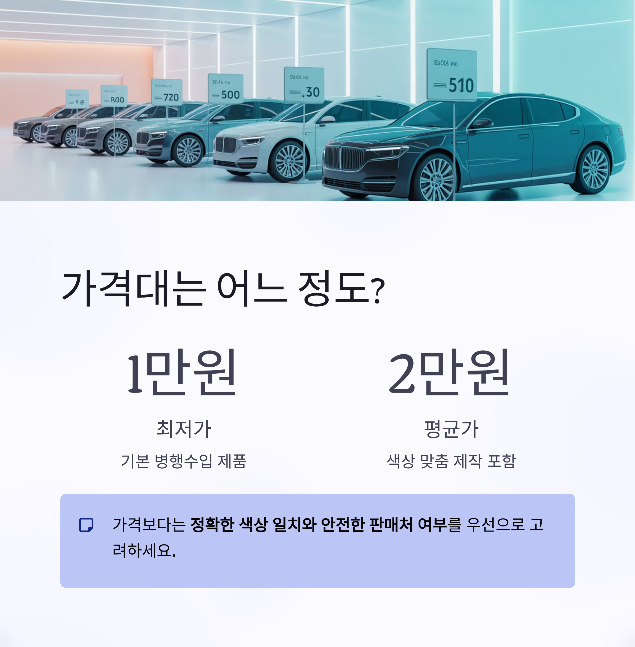 | 색상코드 명시 | 내 차량 색상과 100% 일치하는지 확인 |