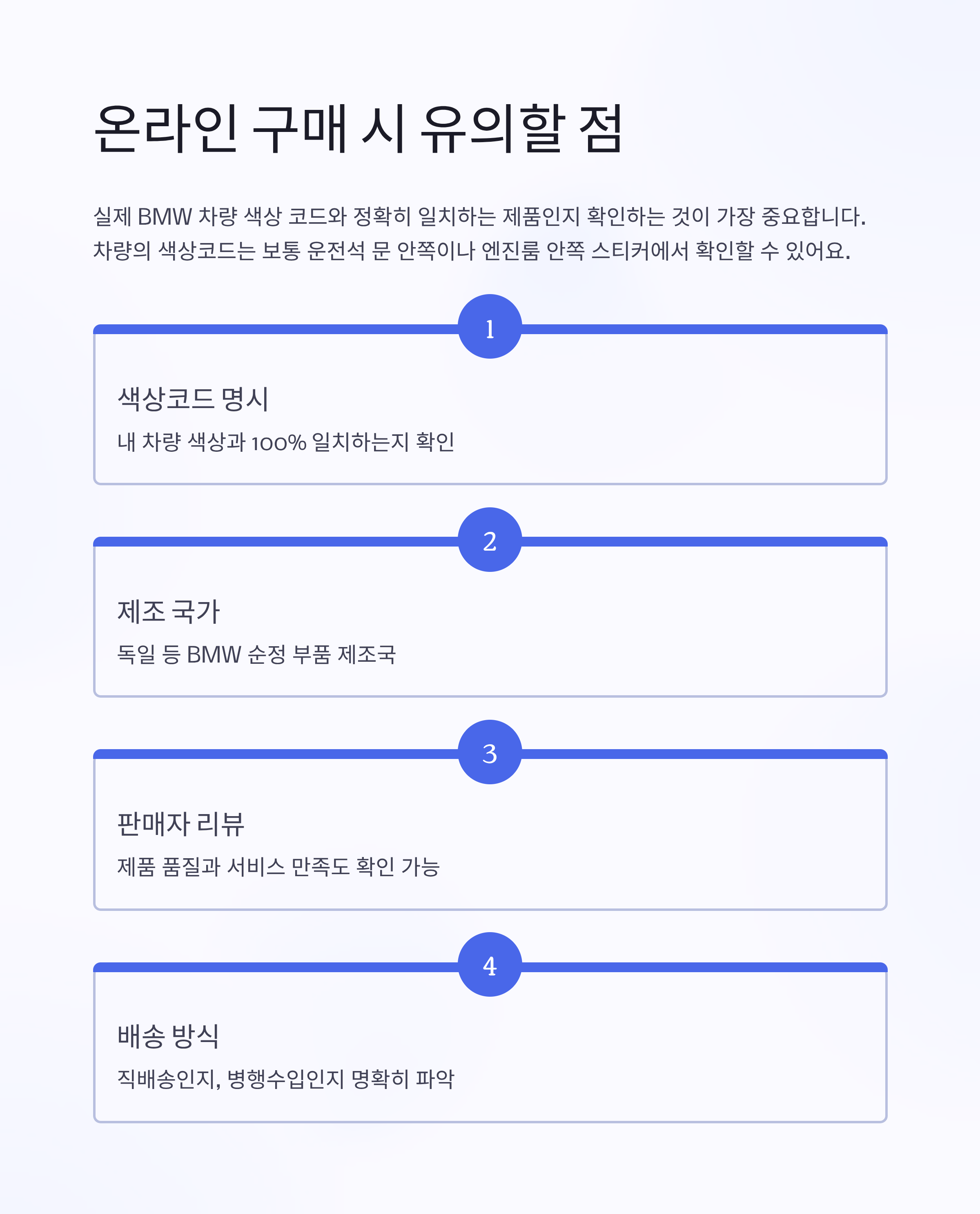 | 색상코드 명시 | 내 차량 색상과 100% 일치하는지 확인 |