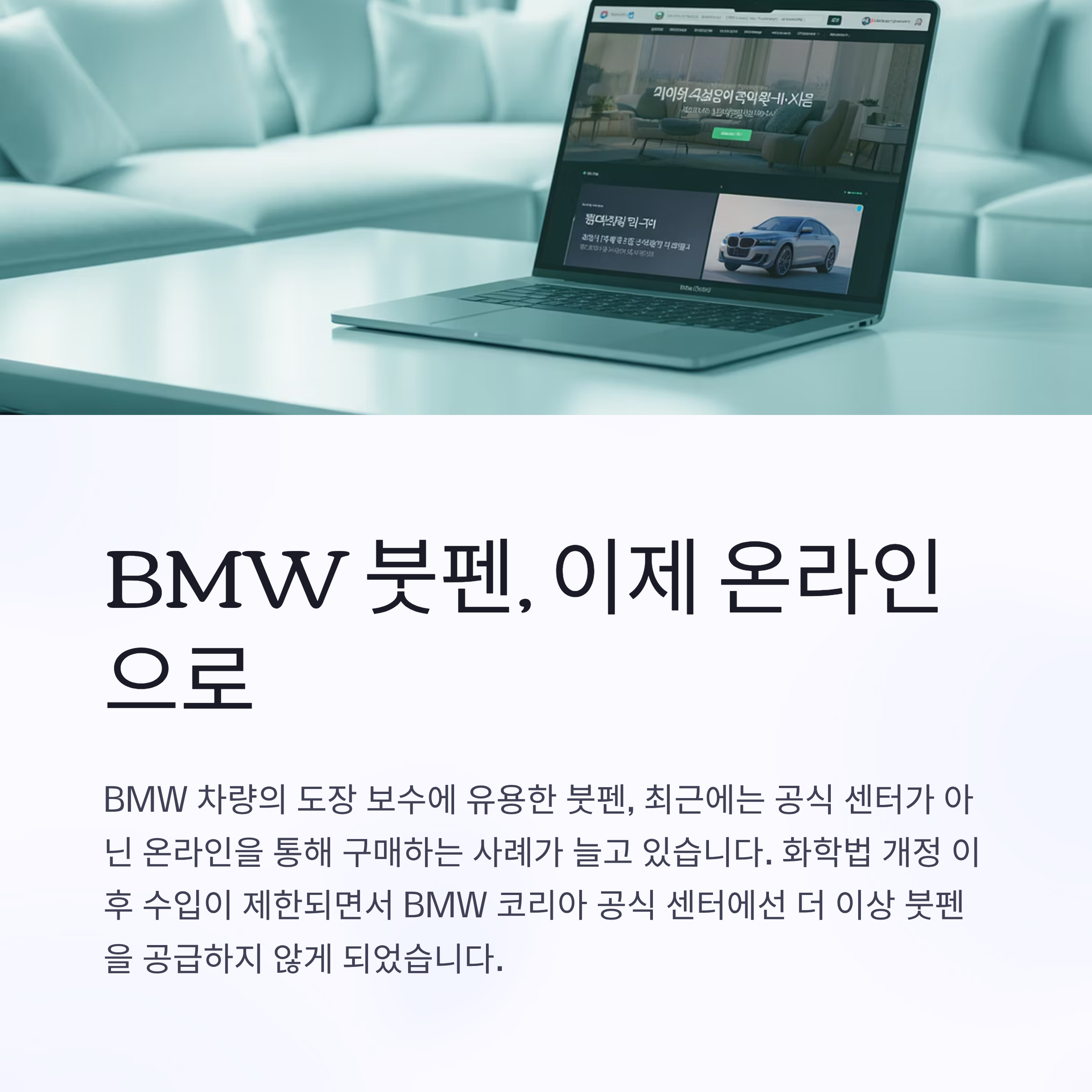BMW 차량의 도장 보수에 유용한 붓펜, 최근에는 공식 센터가 아닌 온라인을 통해 구매하는 사례가 늘고 있습니다. 화학법 개정 이후 수입이 제한되면서 BMW 코리아 공식 센터에선 더 이상 붓펜을 공급하지 않게 되었기 때문인데요. 이 글에서는 BMW 붓펜을 인터넷에서 안전하게 구매하는 방법과 유의할 점들을 정리해드립니다.