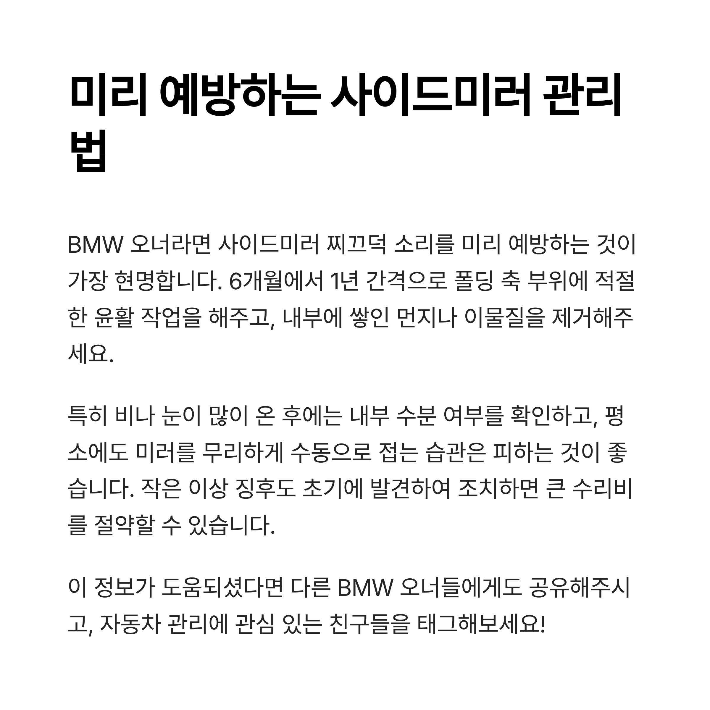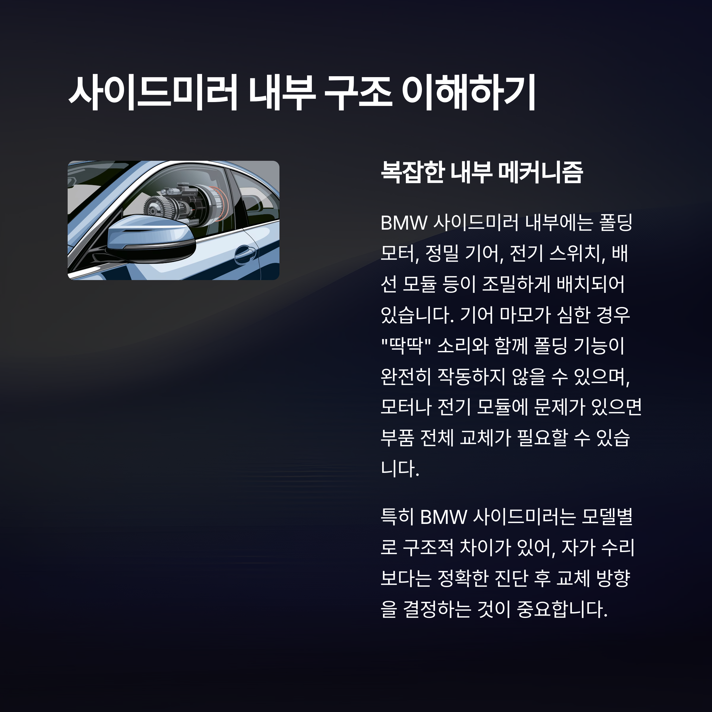 섹션1: 문제의 시작 - BMW 사이드미러 찌끄덕 소리는 왜 생기나요?