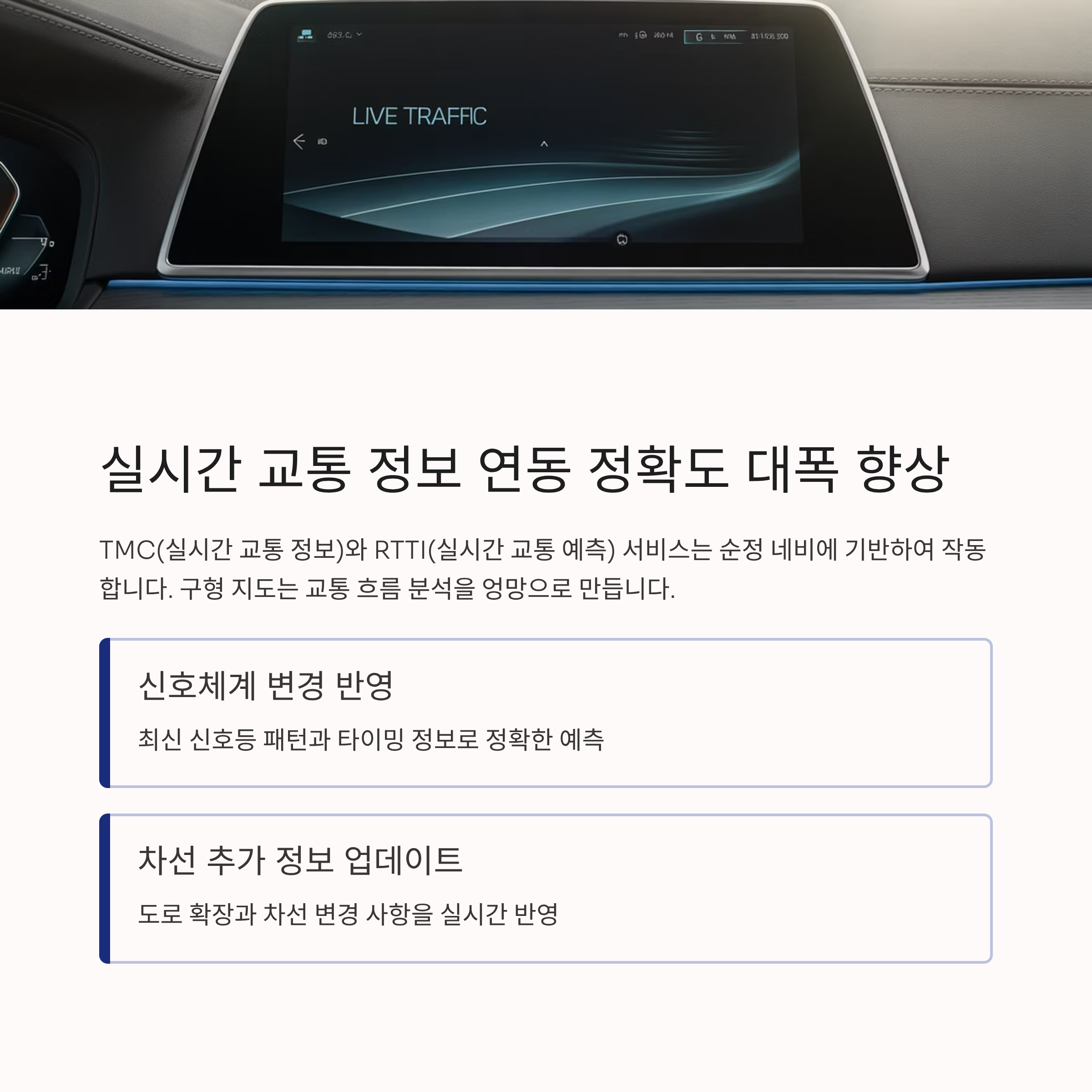 TMC(실시간 교통 정보), RTTI(실시간 교통 예측 정보) 같은 서비스는 순정 네비에 기반하여 작동합니다.