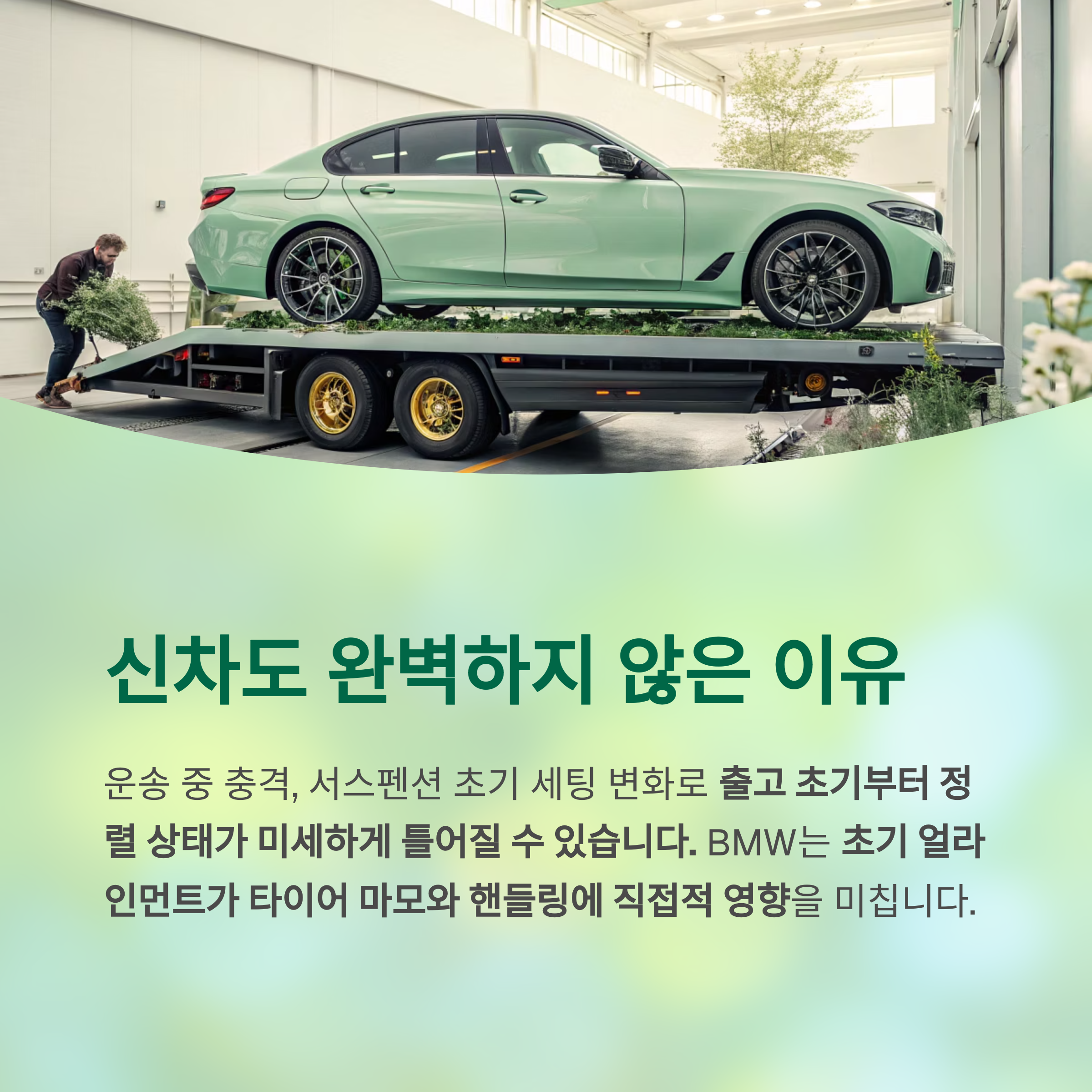 특히 BMW처럼 주행 성능에 민감한 차량은 초기 얼라인먼트 상태가