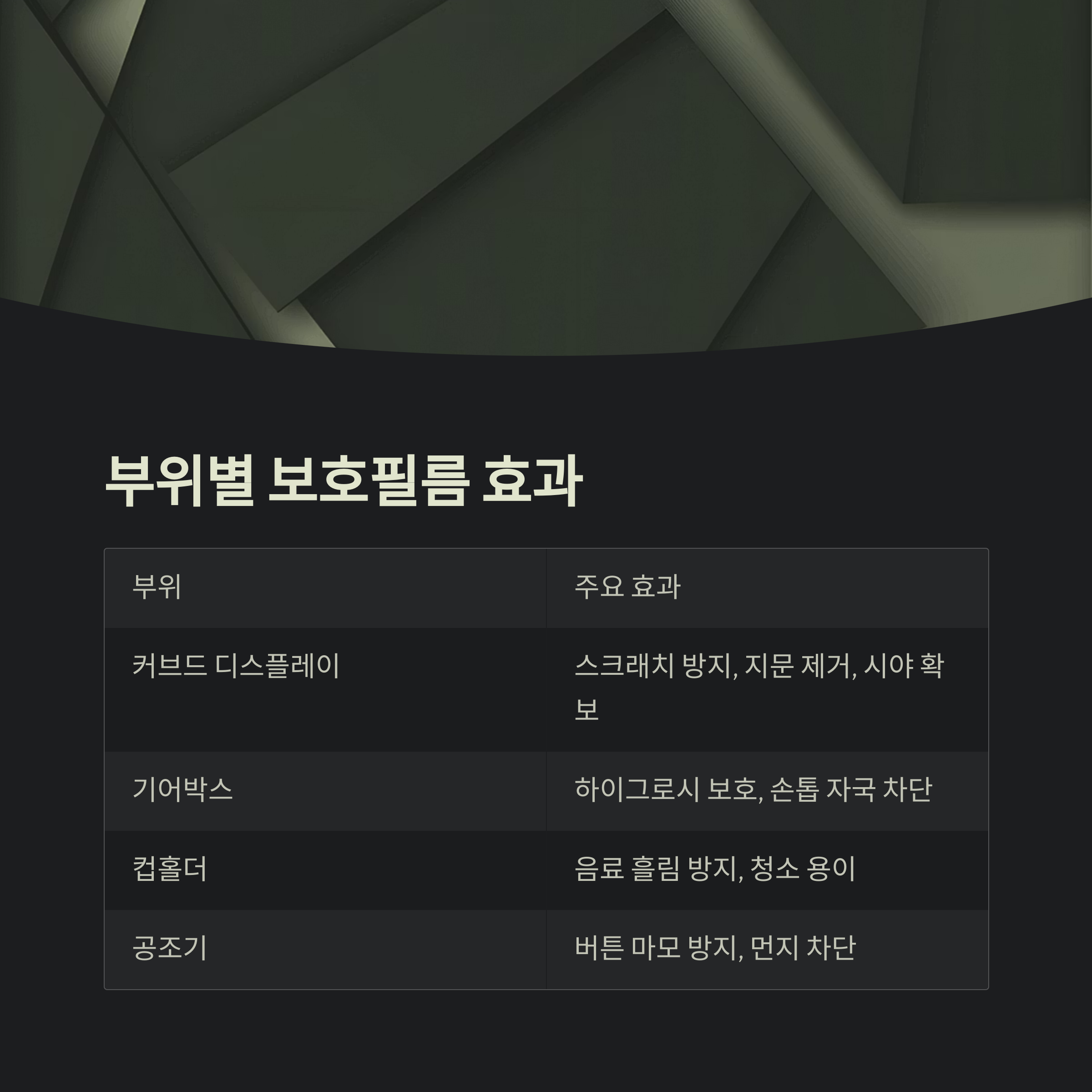 특히 커브드 디스플레이처럼 곡면이 많은 부위는 맞춤 설계된 보호필름을 사용해