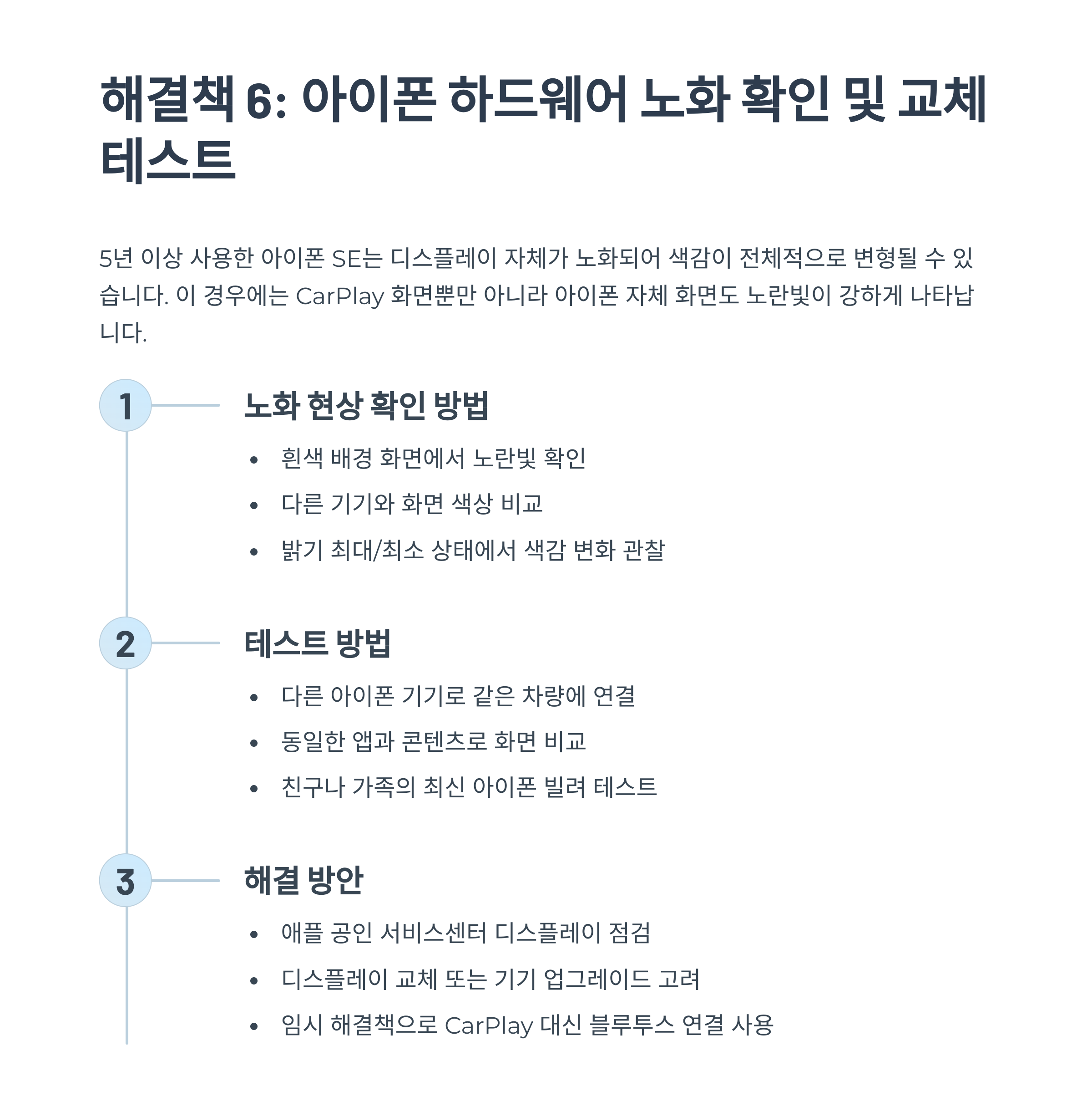 이를 확인하기 위해 다른 아이폰 기기를 같은 차량에 연결해보는 것이 좋습니다.