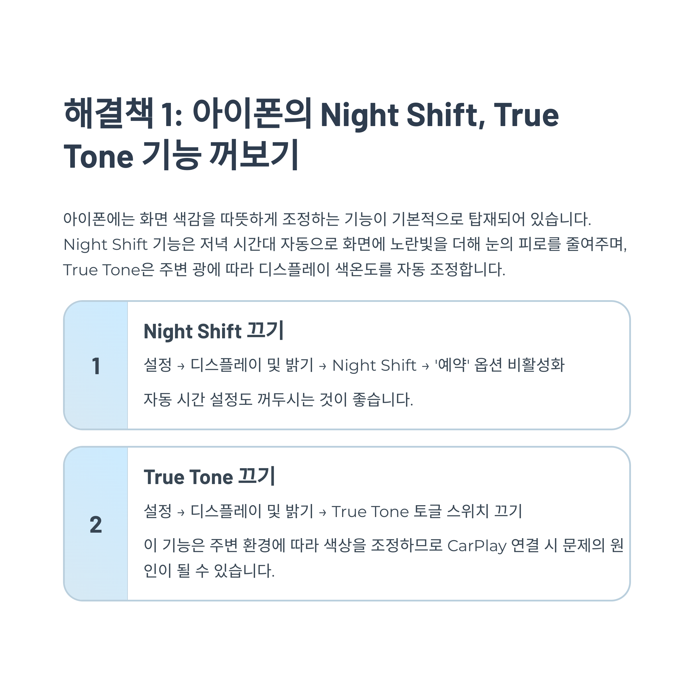 아이폰의 Night Shift, True Tone 기능 꺼보기