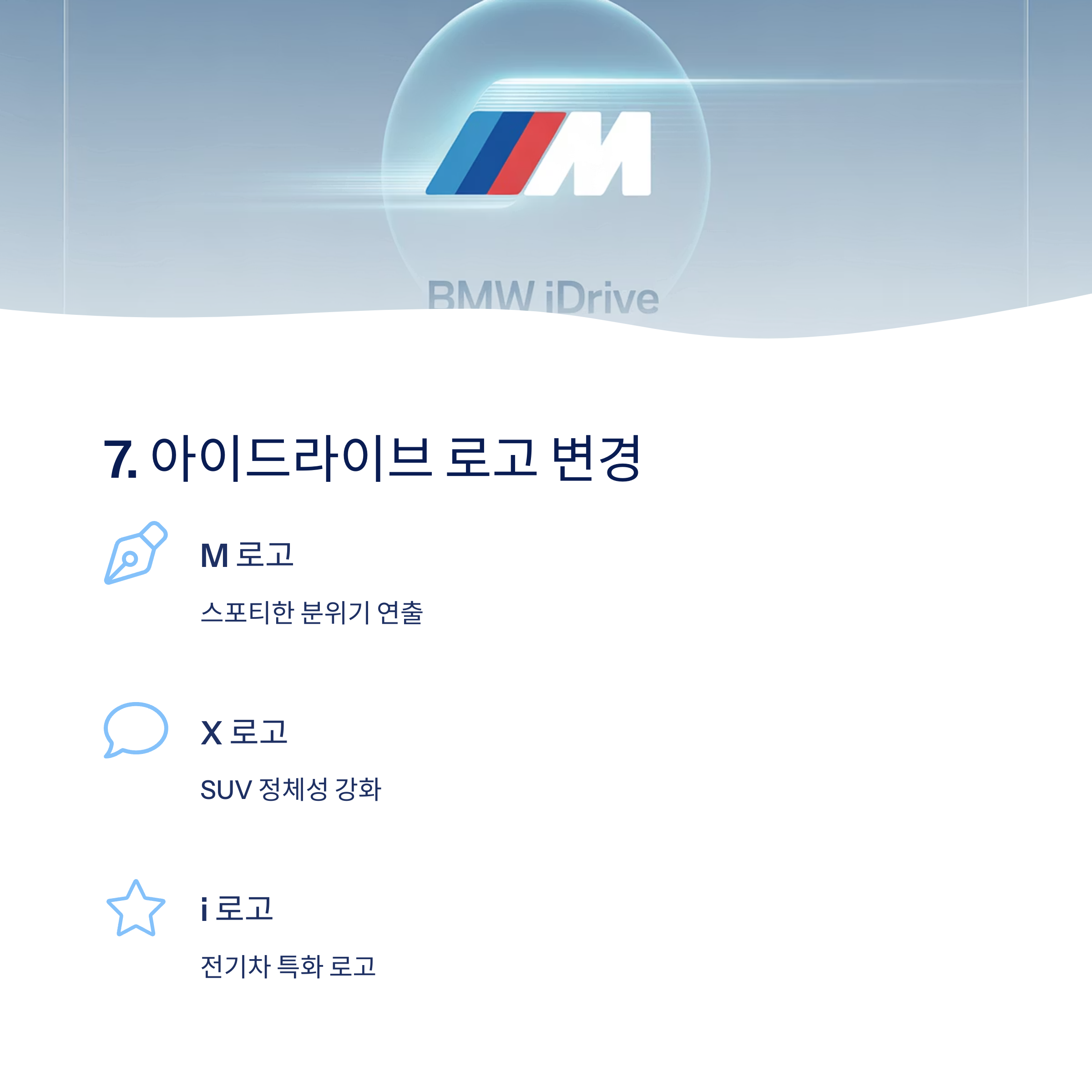 BMW 로고 대신 M, X, i 로고로 변경이 가능합니다.