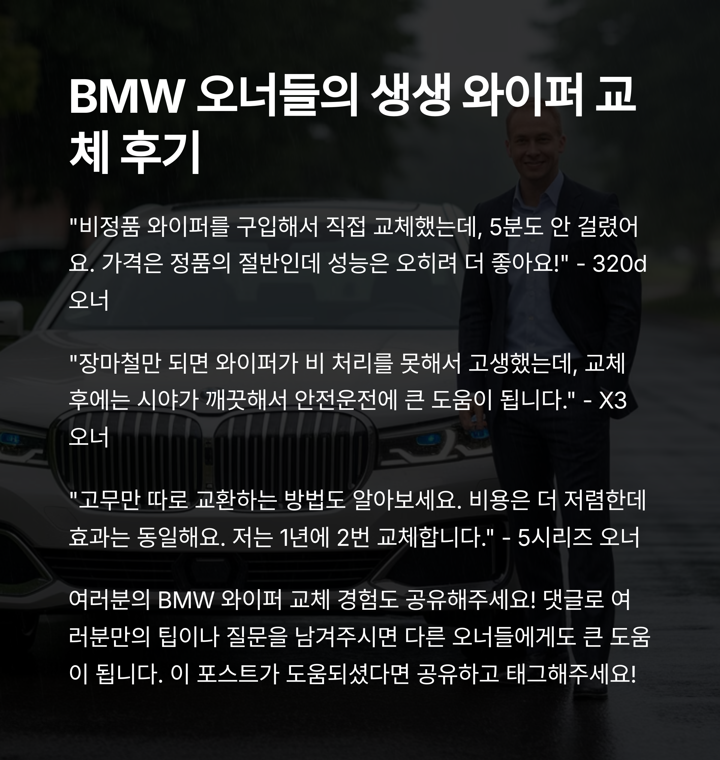 실제 후기 모음 - BMW 오너들이 말하는 와이퍼 교체 팁