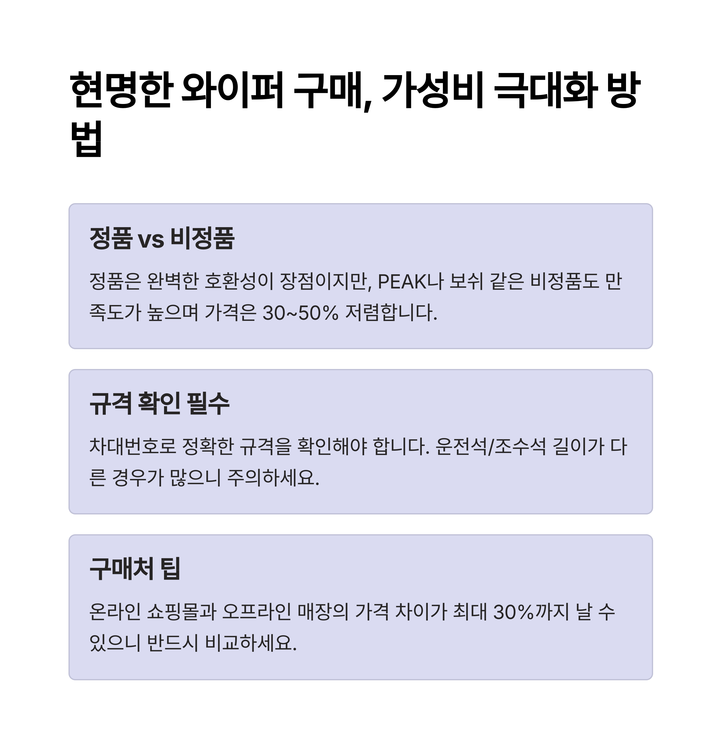 정품 와이퍼는 디자인이 매끈하고 조용하지만
