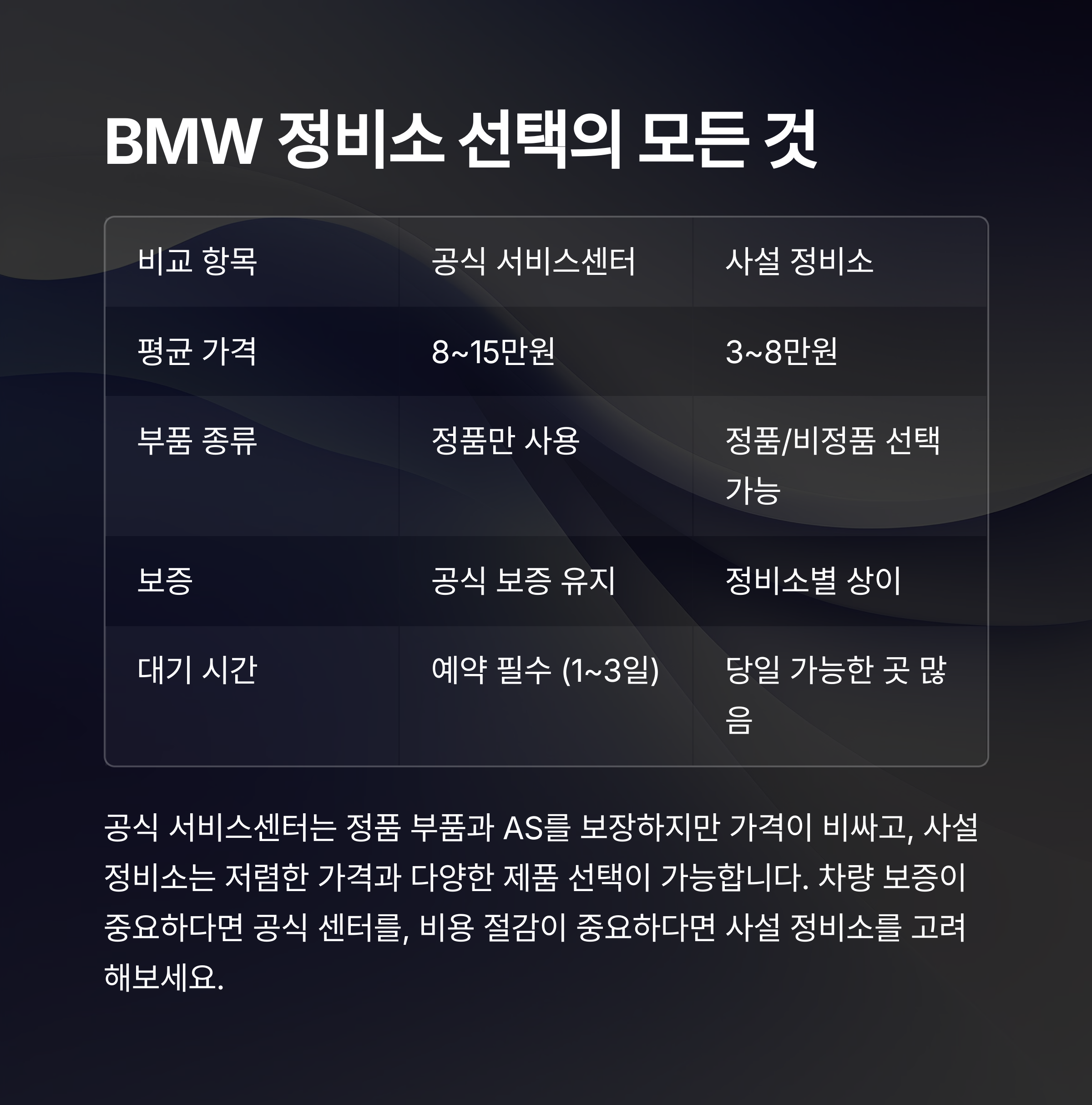 BMW 공식 서비스센터 vs 사설 정비소 비교
