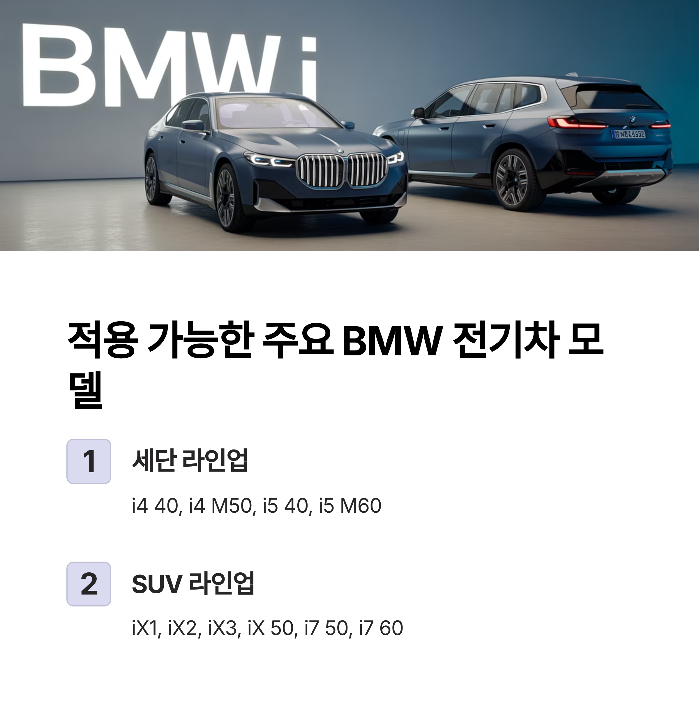 적용 가능한 주요 BMW 전기차 모델
