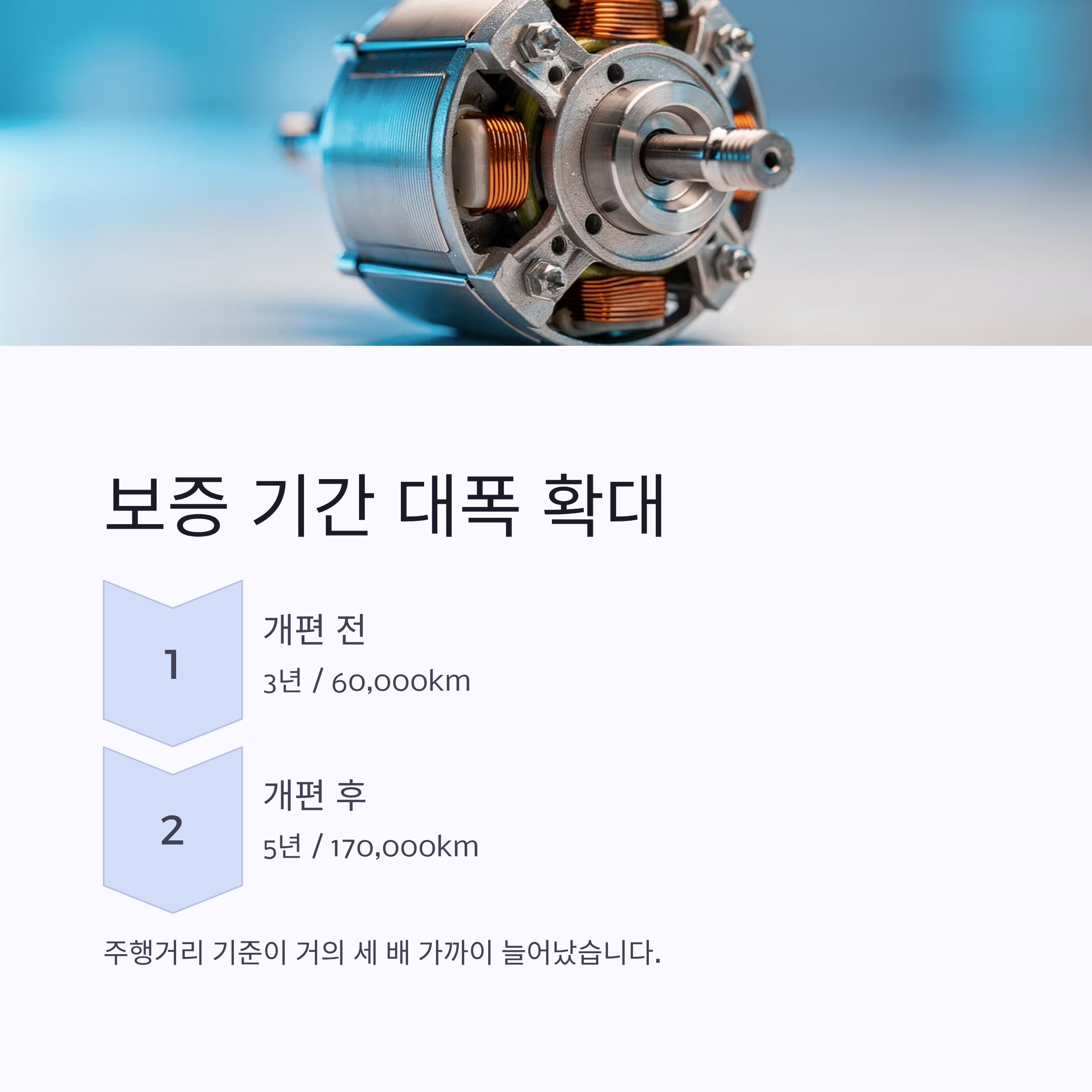 가장 중요한 변화는 모터 보증 기간 연장이에요.