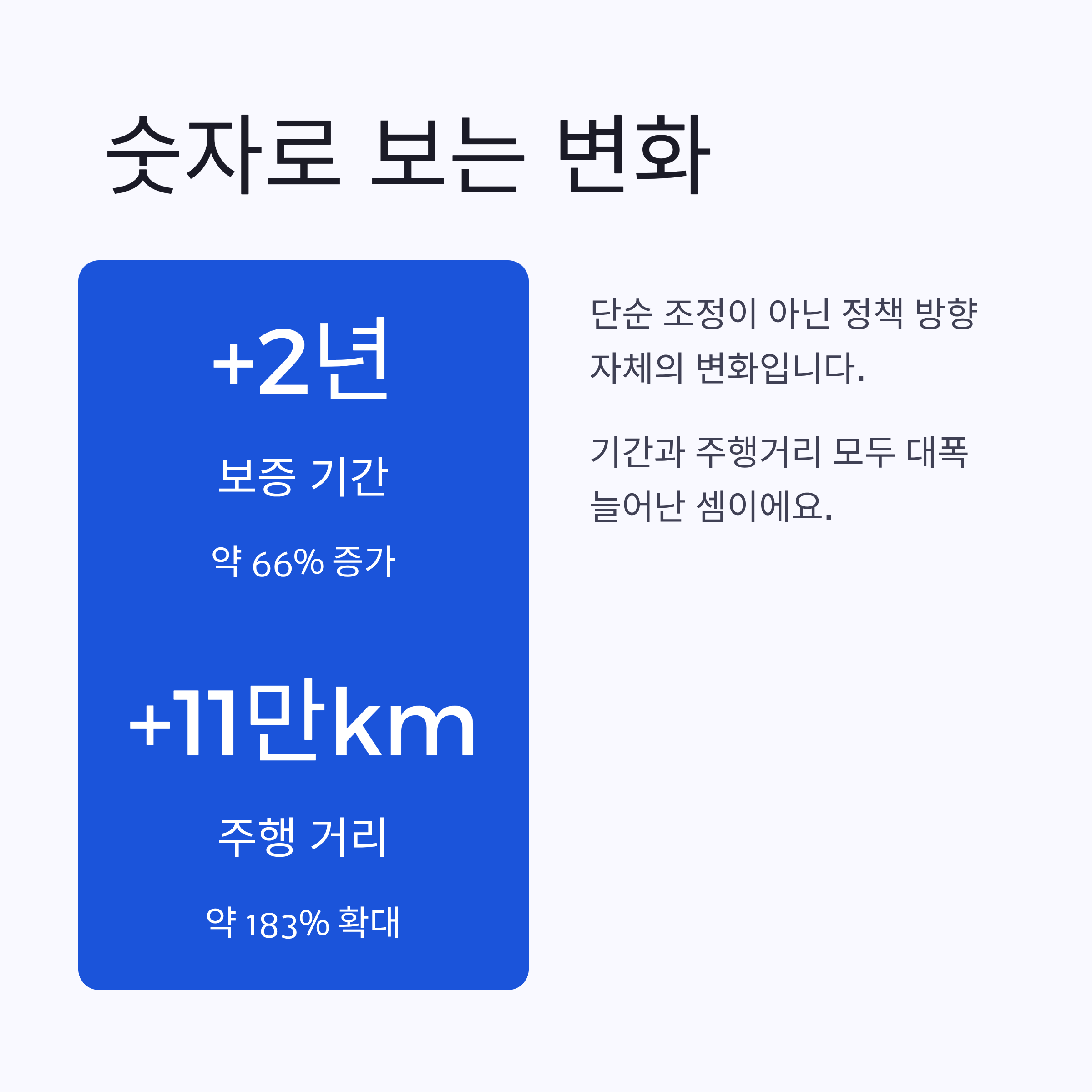 이 변화가 실제로 어떤 의미인지, 그리고 벤츠·아우디·테슬라·현대차 모터 워런티와 비교했을 때 어떤 차이가 있는지 살펴보면 도움이 될 것 같아요.