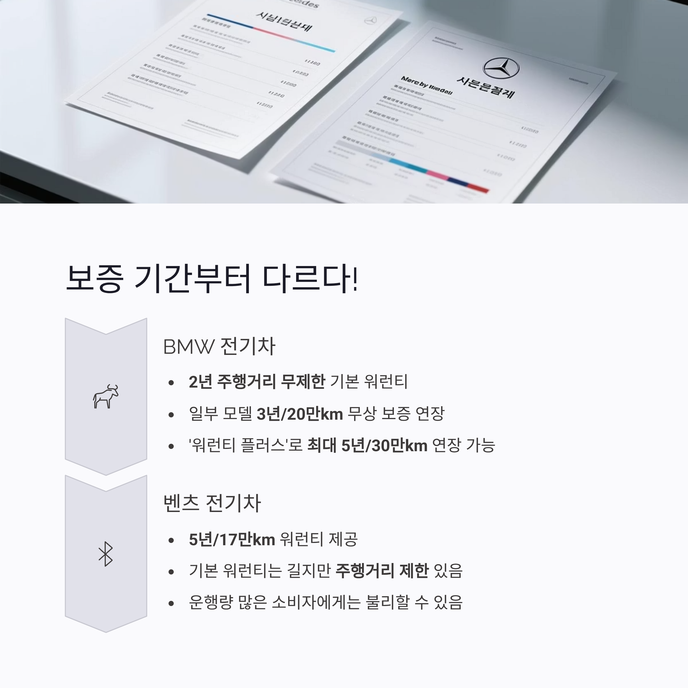 벤츠 vs BMW 전기차, 워런티부터 소모품까지… 장기 보유 시 진짜 이득은 누구?