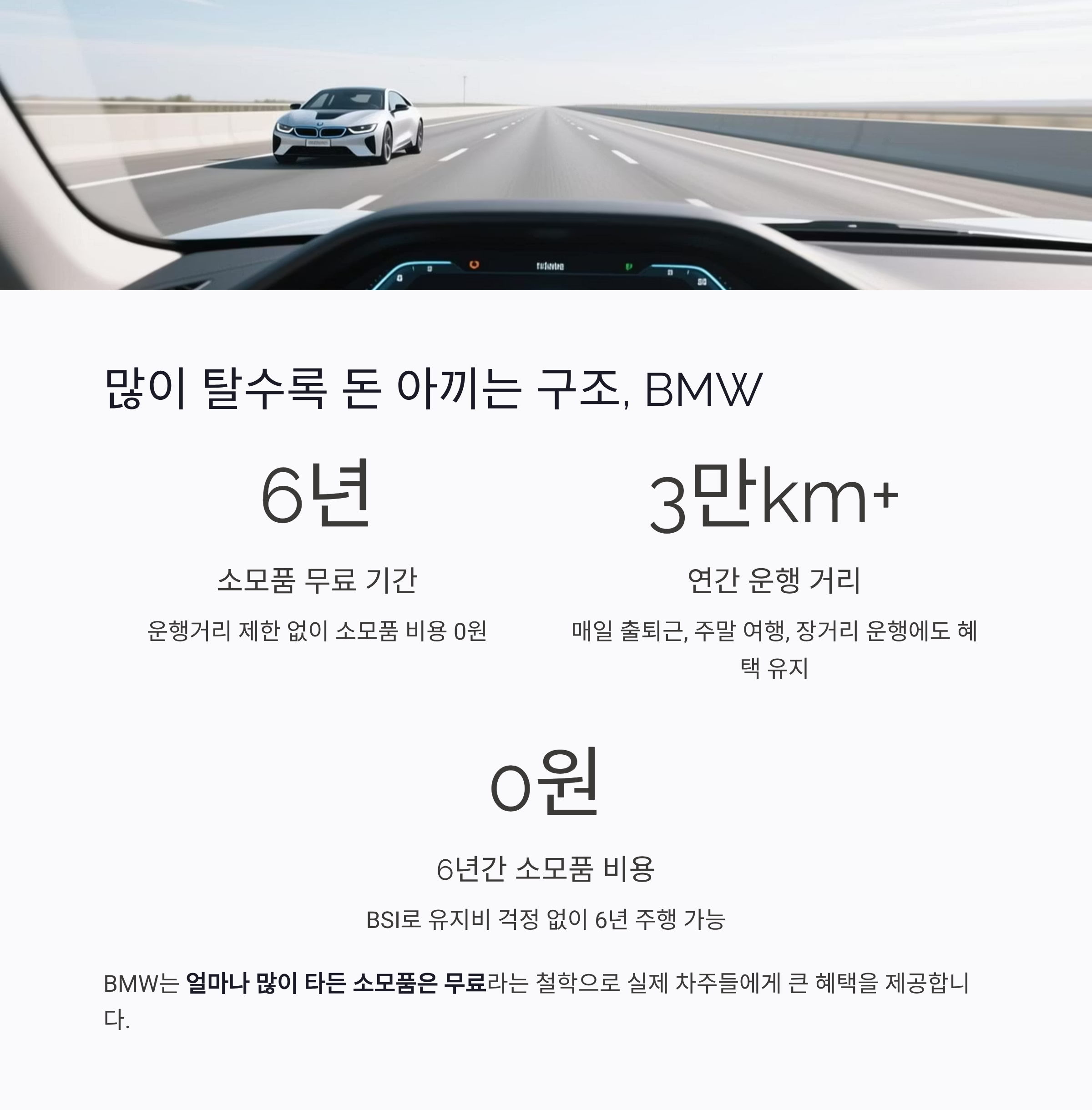 BMW는 운행 거리 제한 없이 6년간 소모품 무료.