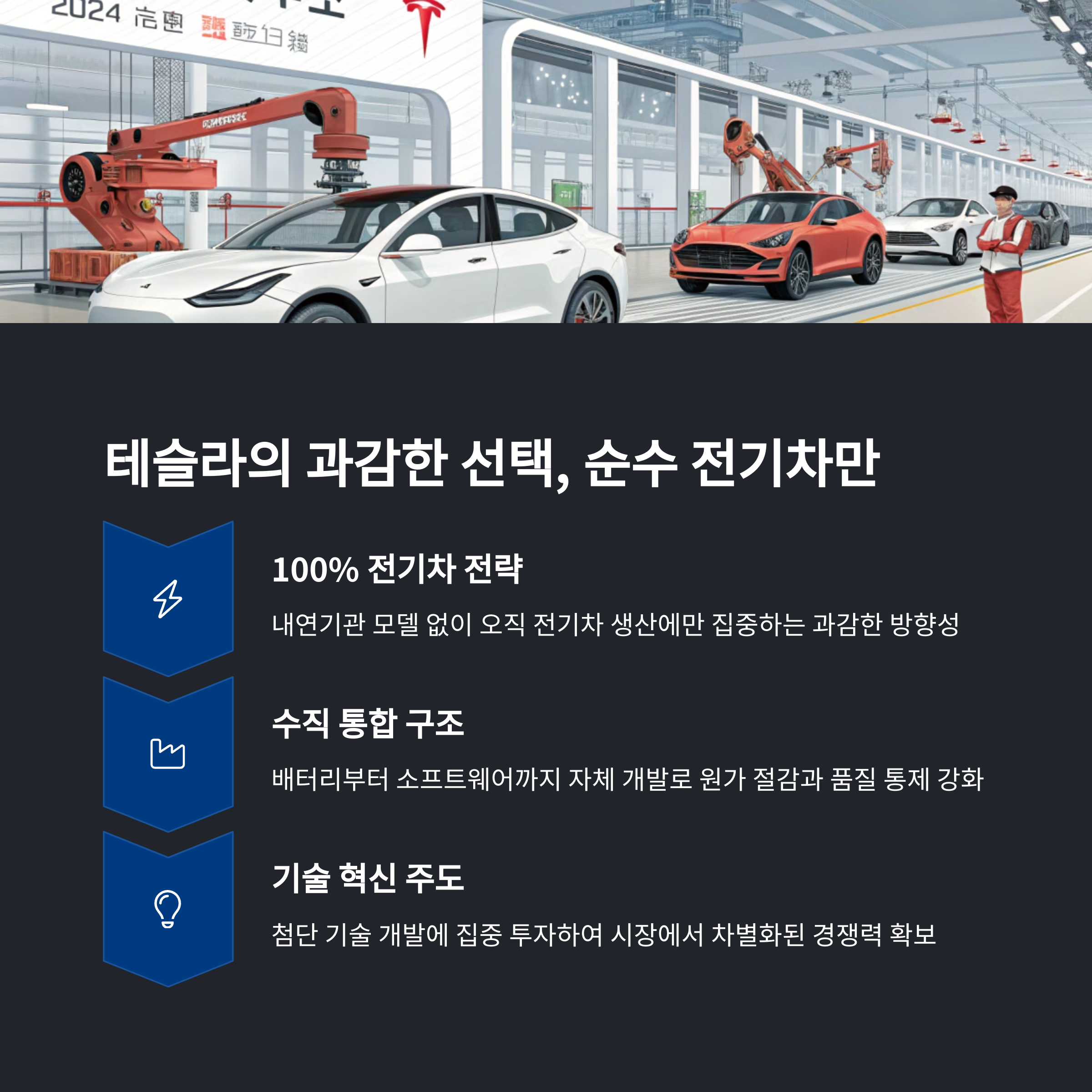 테슬라의 전략: 기술 중심, 수직 통합, 오직 전기차