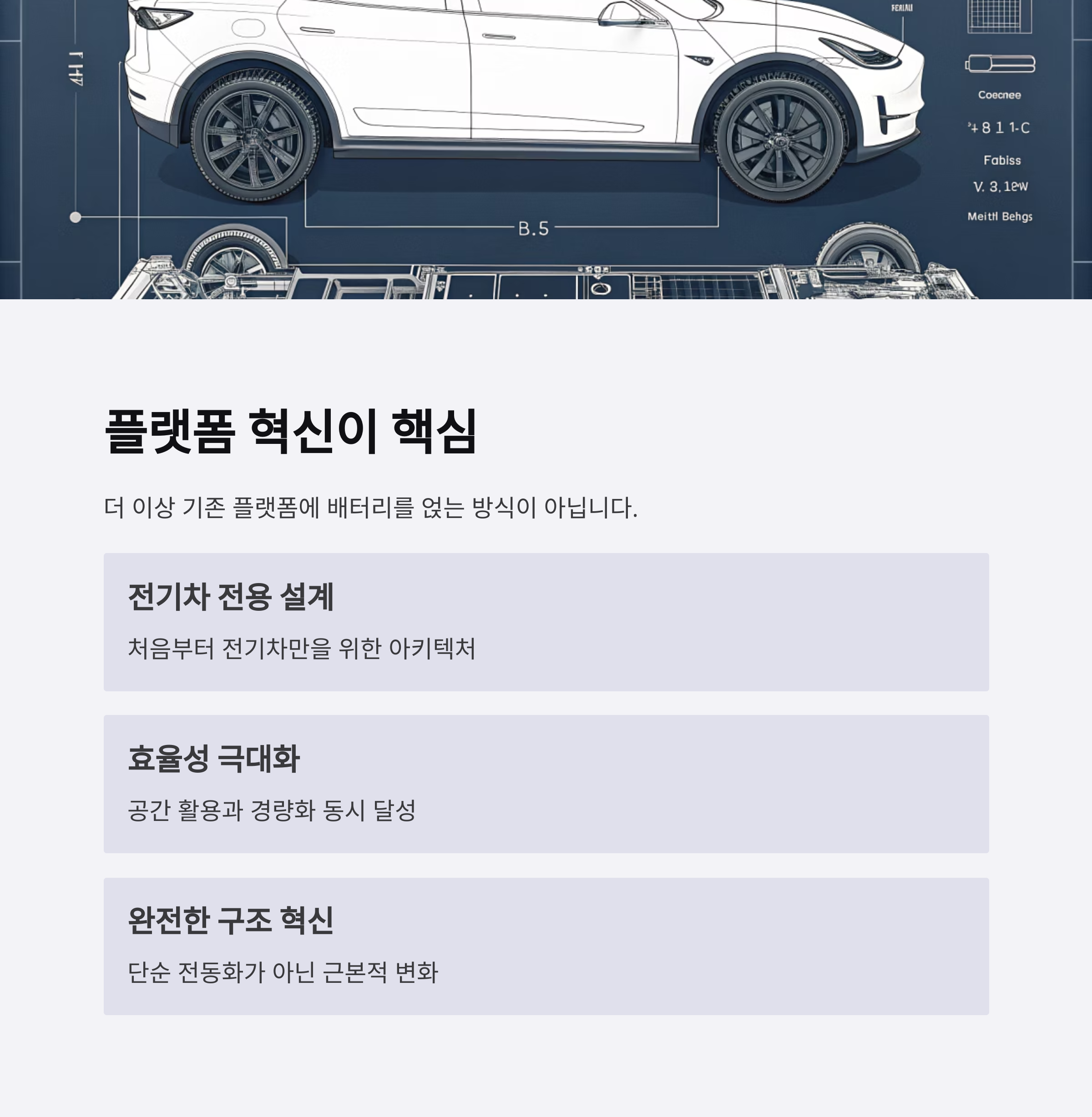 핵심은 단순한 전동화가 아닌 ‘완전한 구조 혁신’에 있습니다.