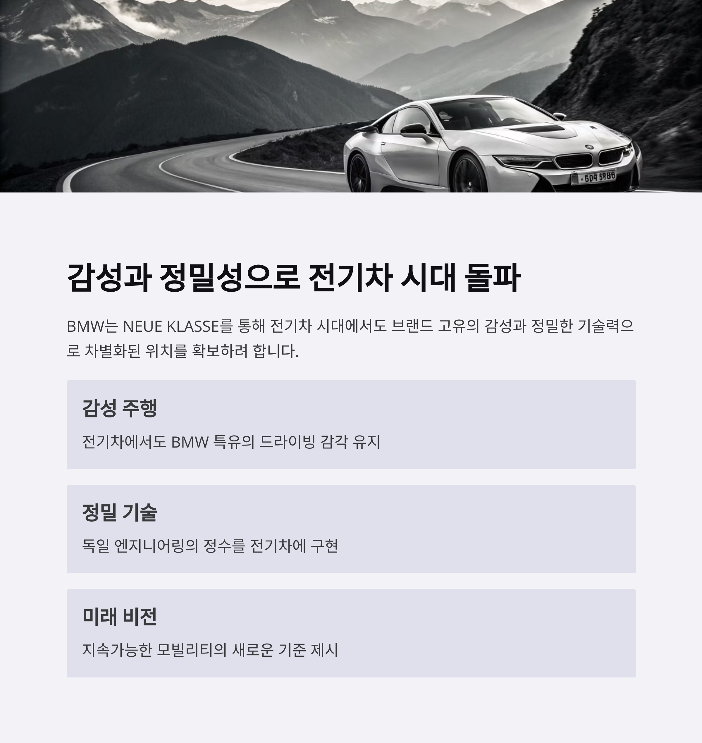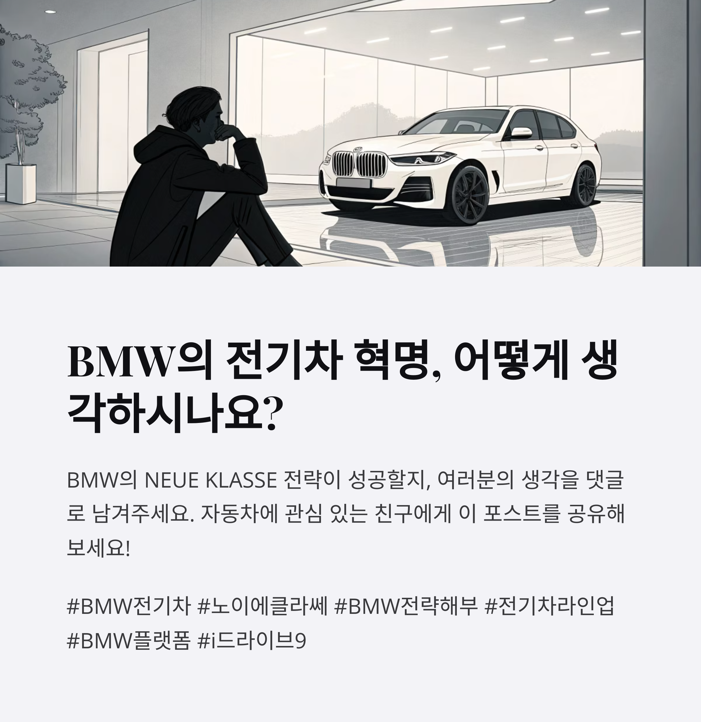 결국 BMW는 NEUE KLASSE를 통해 브랜드 정체성을 유지하면서 전환의 리스크를 최소화하려 합니다.
