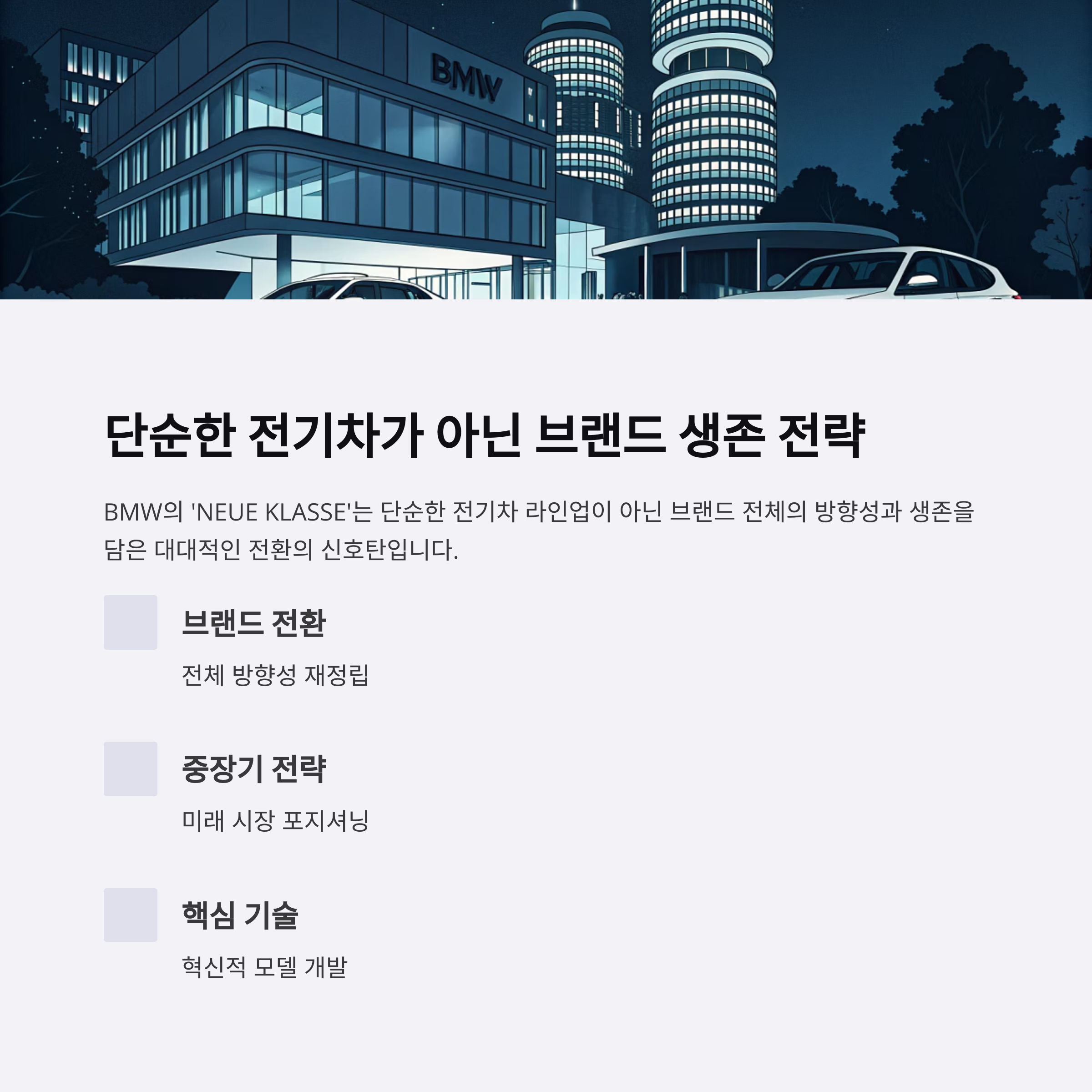 결국 BMW는 NEUE KLASSE를 통해 브랜드 정체성을 유지하면서 전환의 리스크를 최소화하려 합니다.