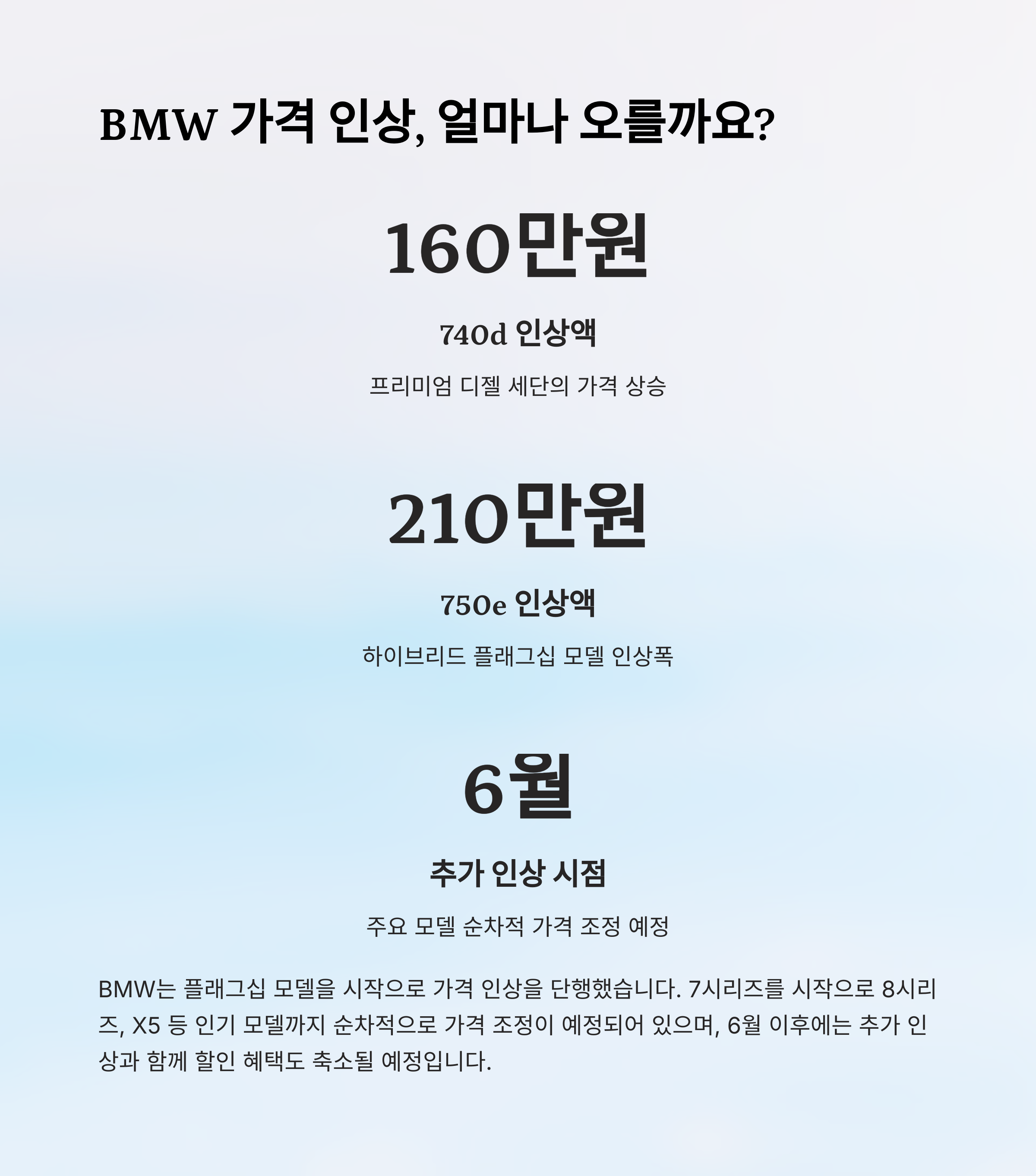 BMW 차량의 가격 인상은 소비자들에게 민감할 수밖에 없습니다. 최근 인상폭은 부담스럽지만, 프로모션 혜택을 통해 일부 보완 가능합니다.