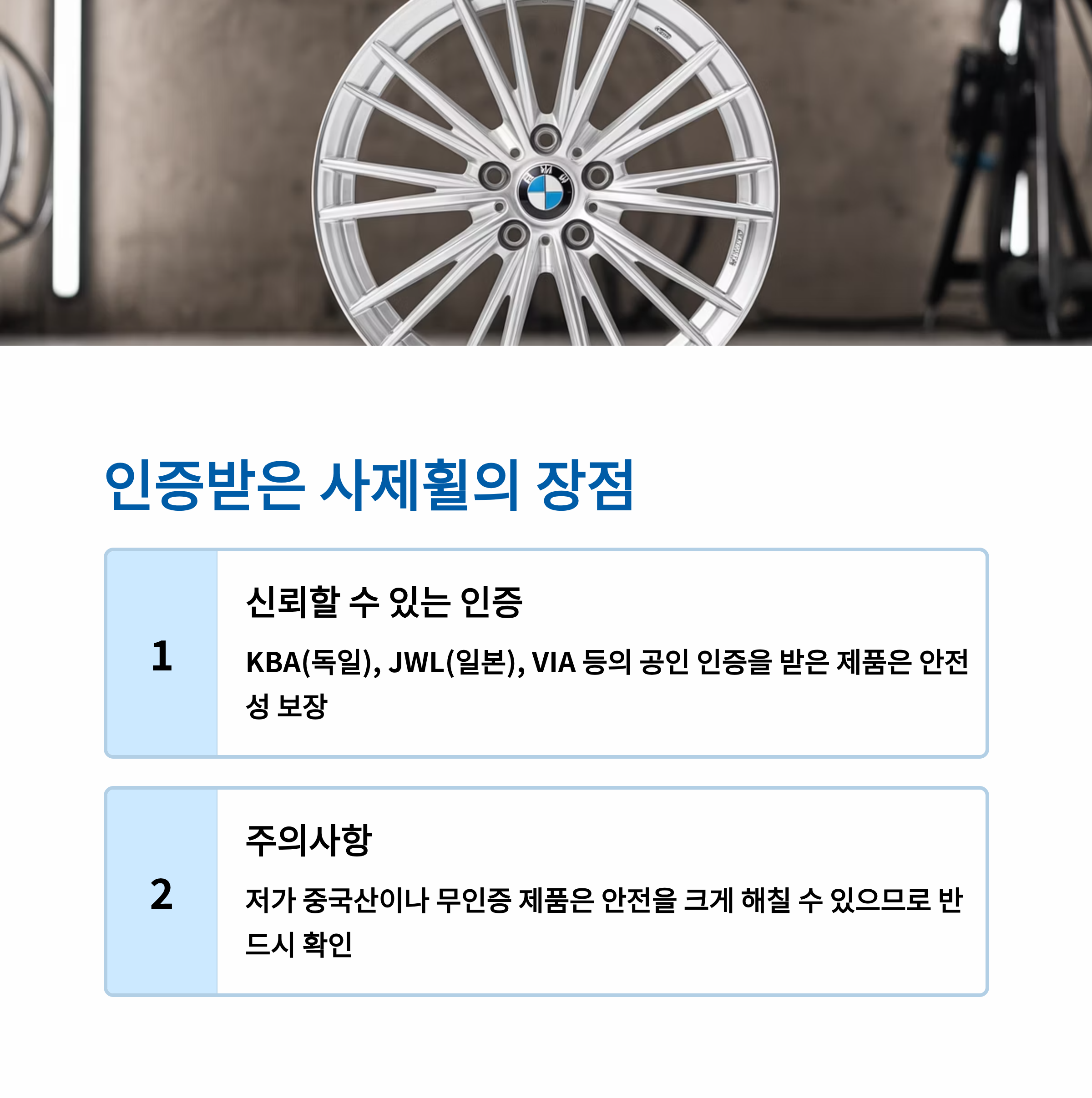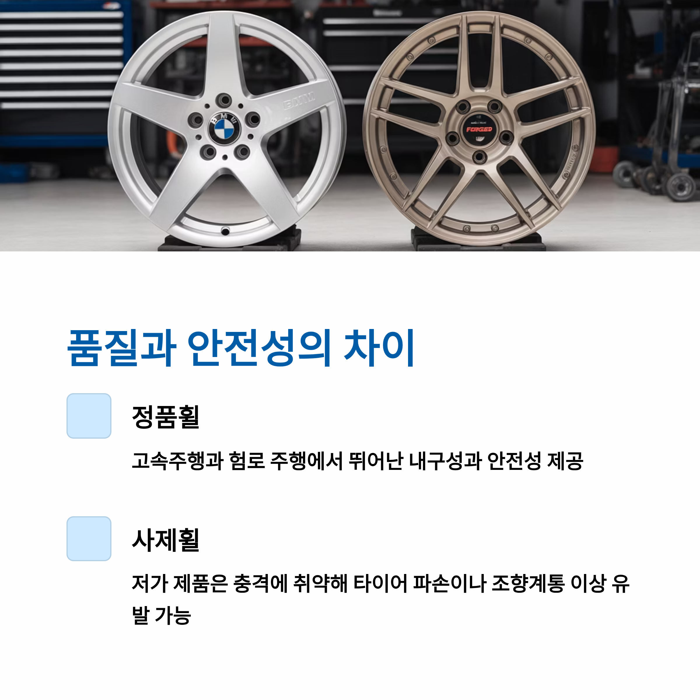 단, 저가 중국산 휠이나 인증 없는 제품은 안전을 크게 해칠 수 있으므로