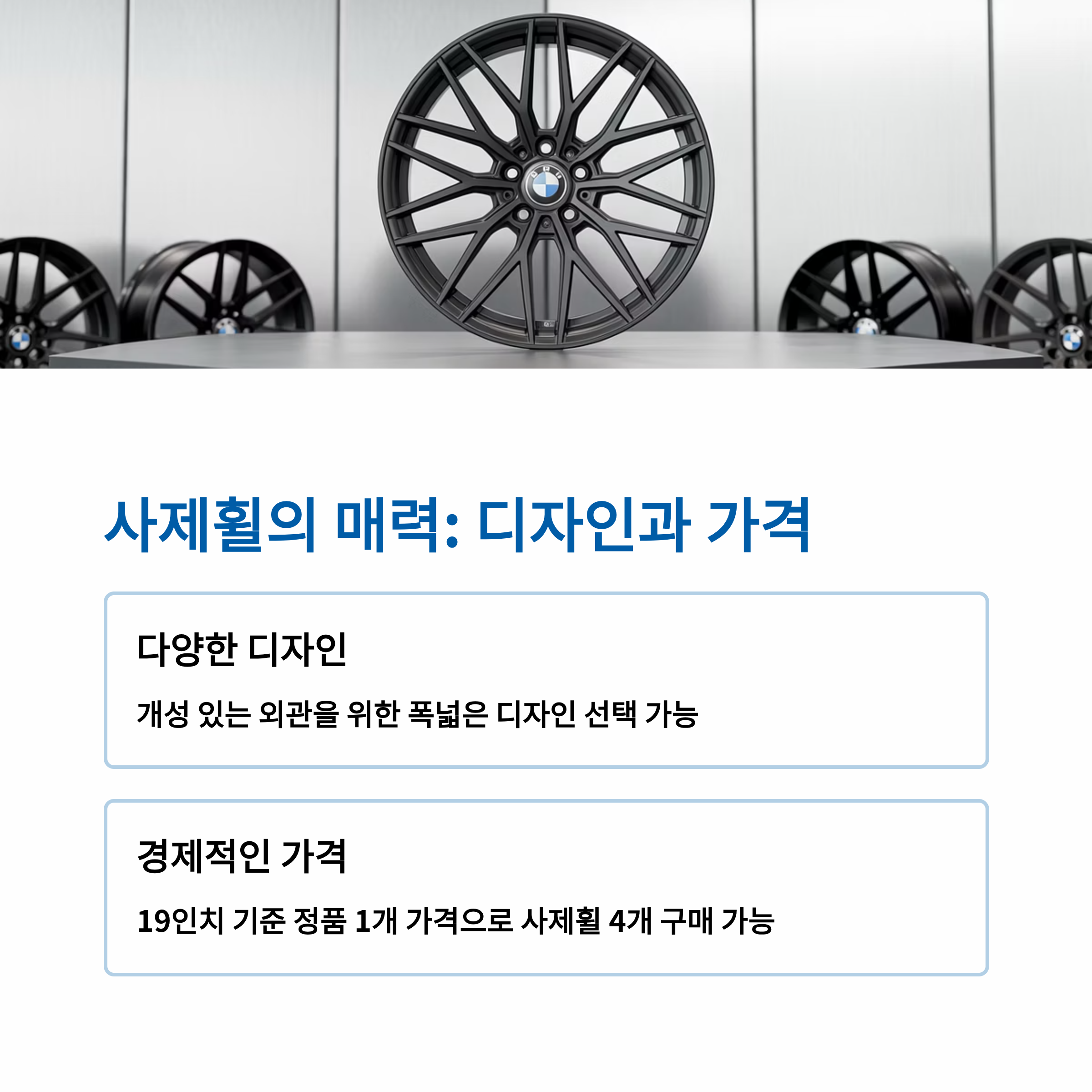 디자인과 가격에서 이점이 있는 사제휠도 좋은 선택이 될 수 있습니다.