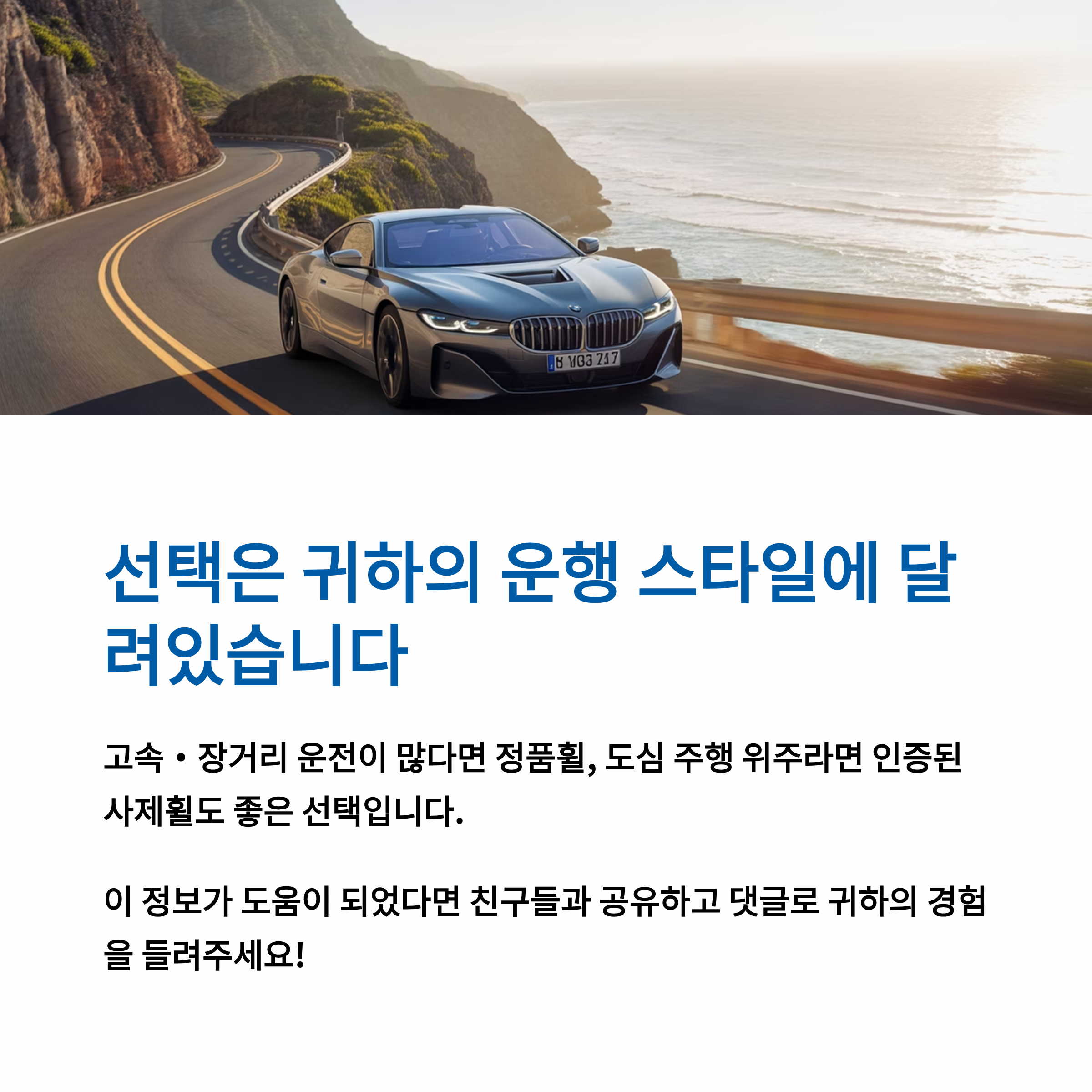 결국 본인의 운행 스타일과 예산, 관리 가능성에 따라