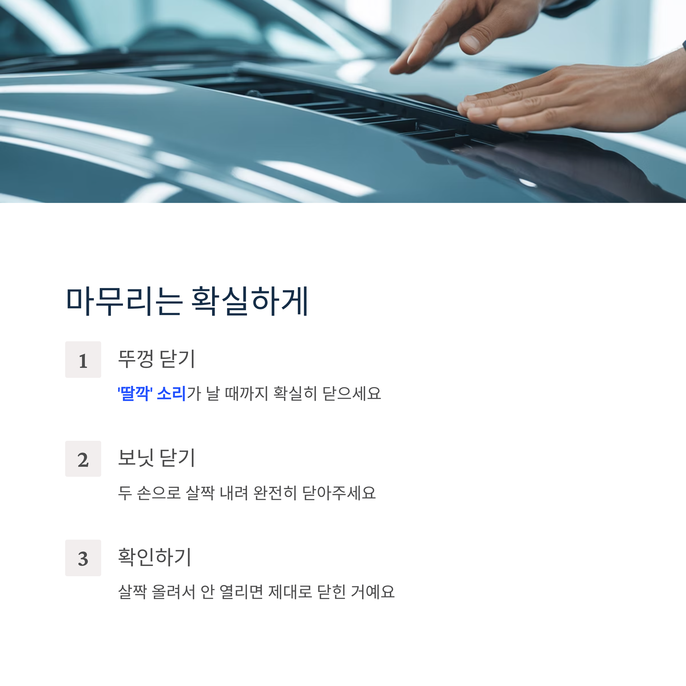 그리고 보닛도 두 손으로 살짝 내려 완전히 닫아주세요.