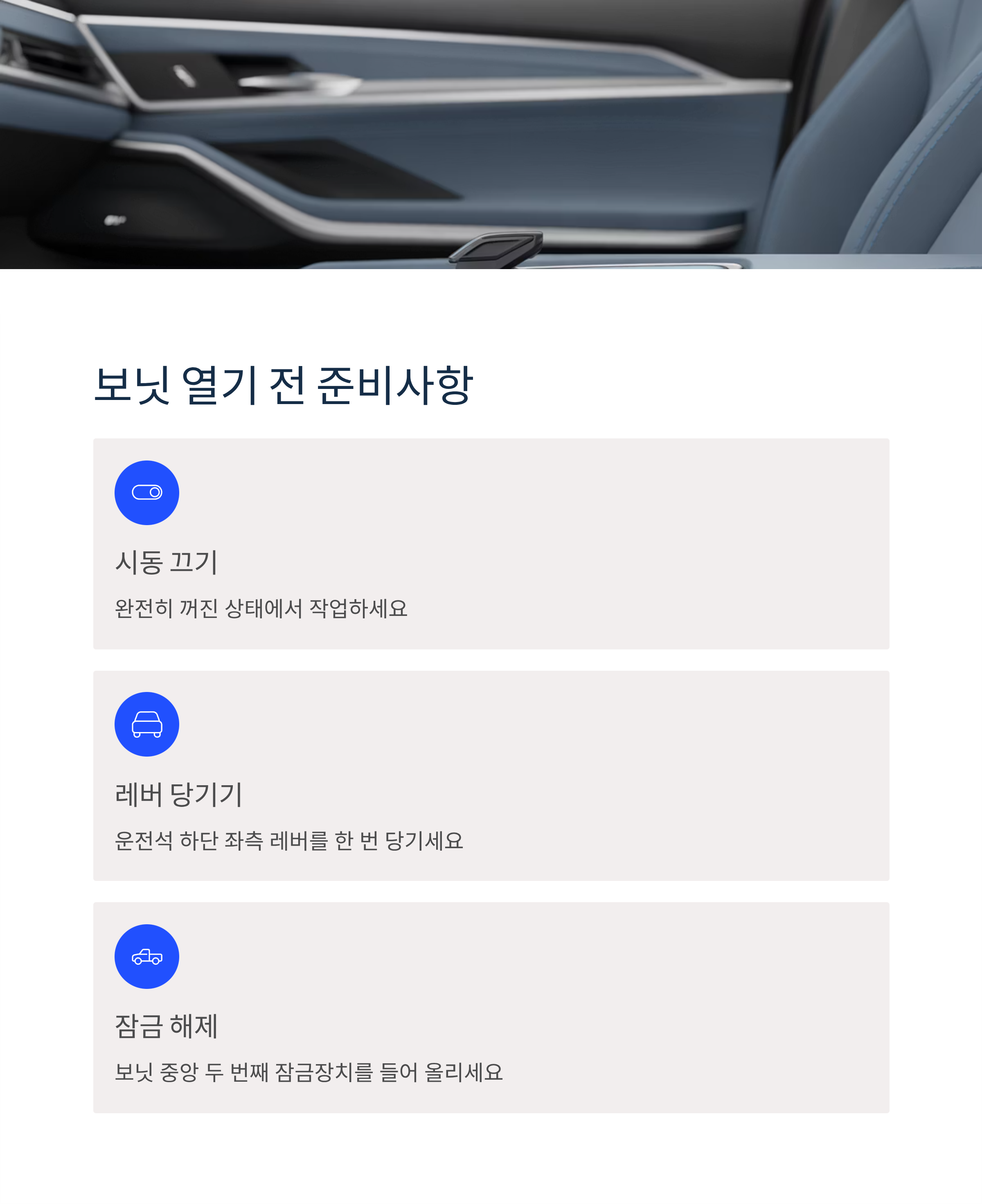 보닛 열기 전, 차량 시동은 꼭 꺼주세요