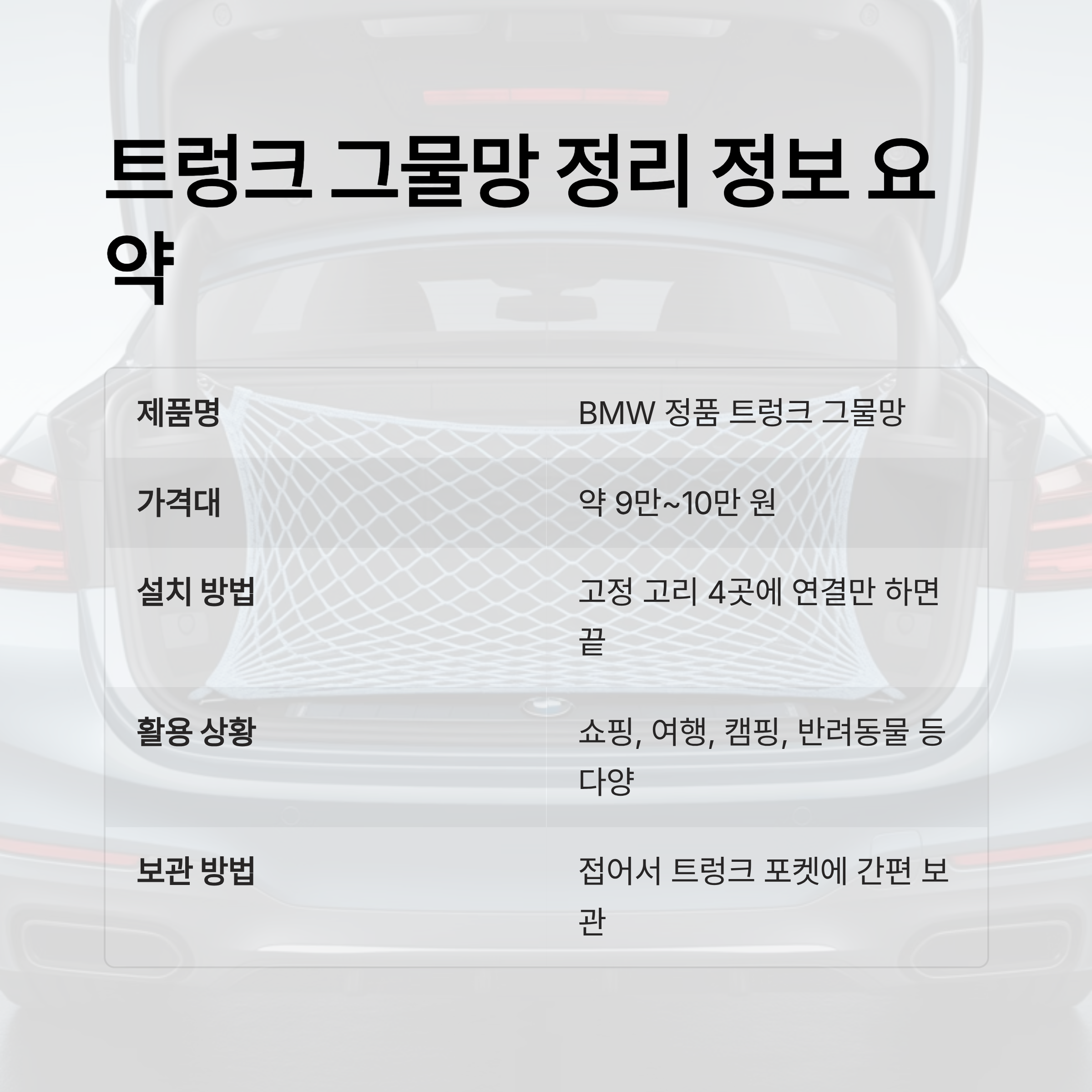 트렁크 그물망 정리 정보 요약