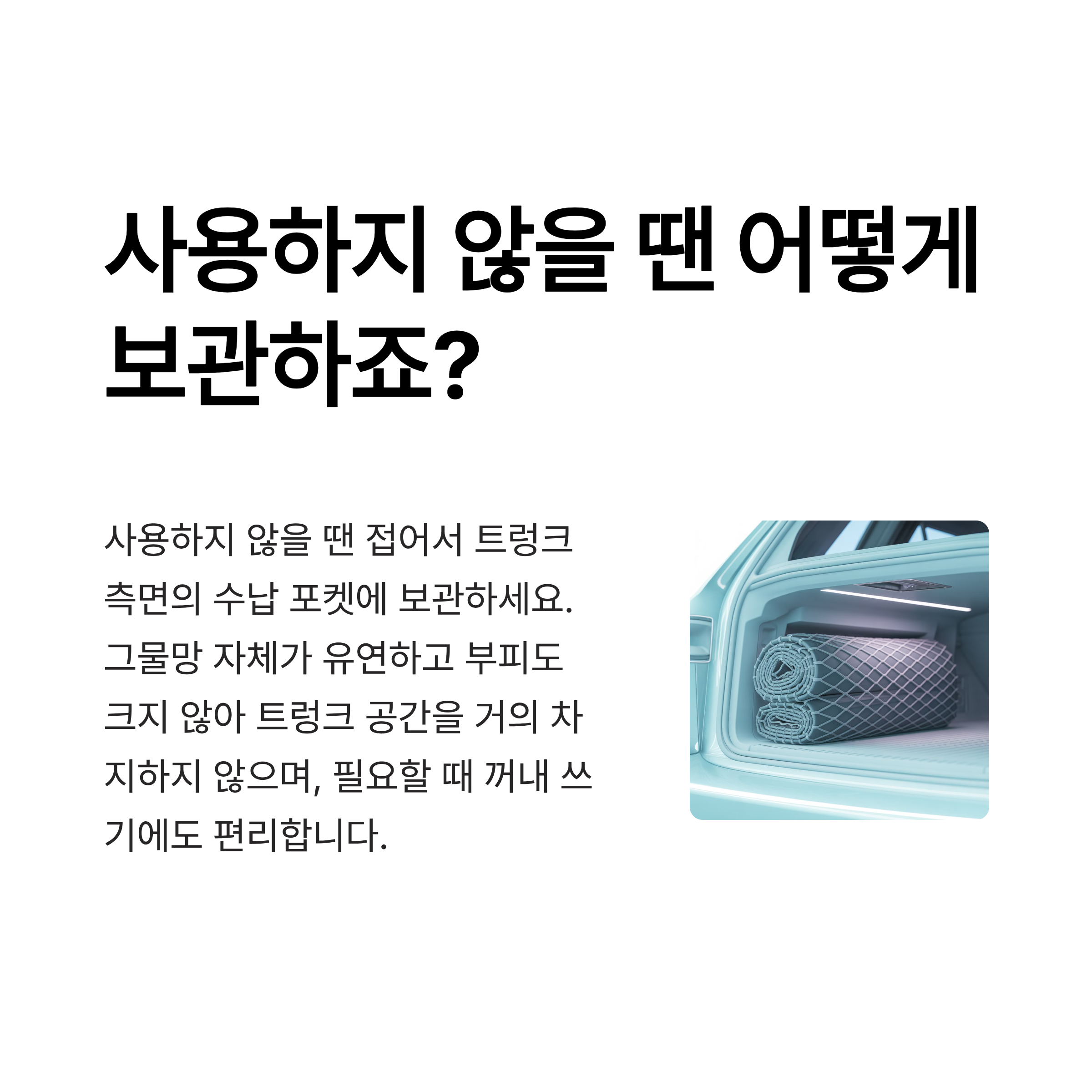 그물망 자체가 유연하고 부피도 크지 않아 트렁크 공간을 거의 차지하지 않으며,