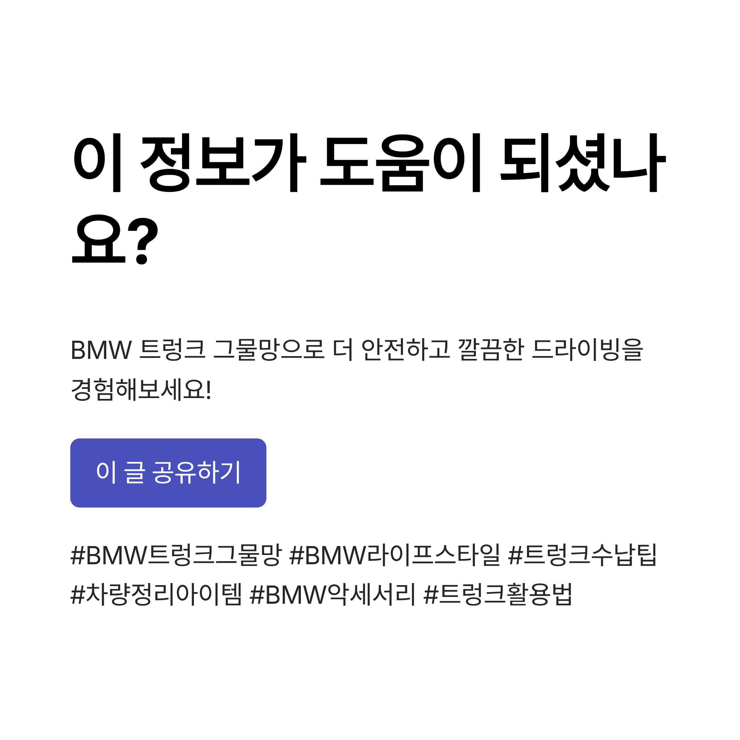 BMW를 출고하면 트렁크에 함께 제공되는 정품 그물망, 그냥 보기엔 단순해 보여도 알고 보면 꽤 유용한 아이템입니다. 특히 주행 중 짐이 움직이는 걸 방지하고 싶을 때 제 역할을 톡톡히 해주죠. 가격은 약 10만원대에 해당하며, BMW 라이프스타일 액세서리 중 실용성이 높은 구성품 중 하나로 꼽힙니다. 이번 글에서는 이 트렁크 그물망의 사용법부터 보관 팁, 상황별 활용법까지 차근차근 정리해드릴게요.