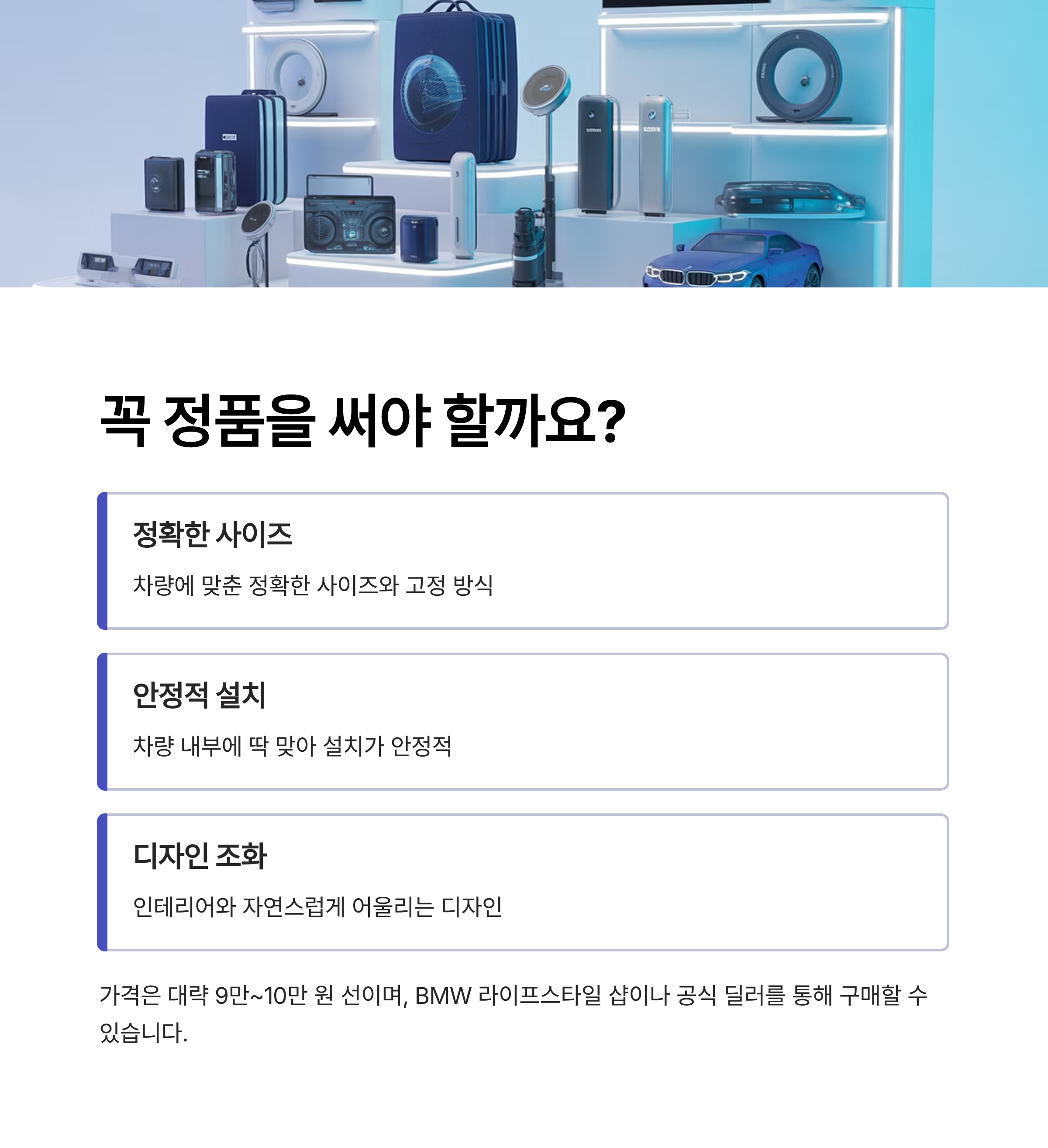 가격은 대략 9만~10만 원 선이며, BMW 라이프스타일 샵이나 공식 딜러를 통해 구매할 수 있습니다.
