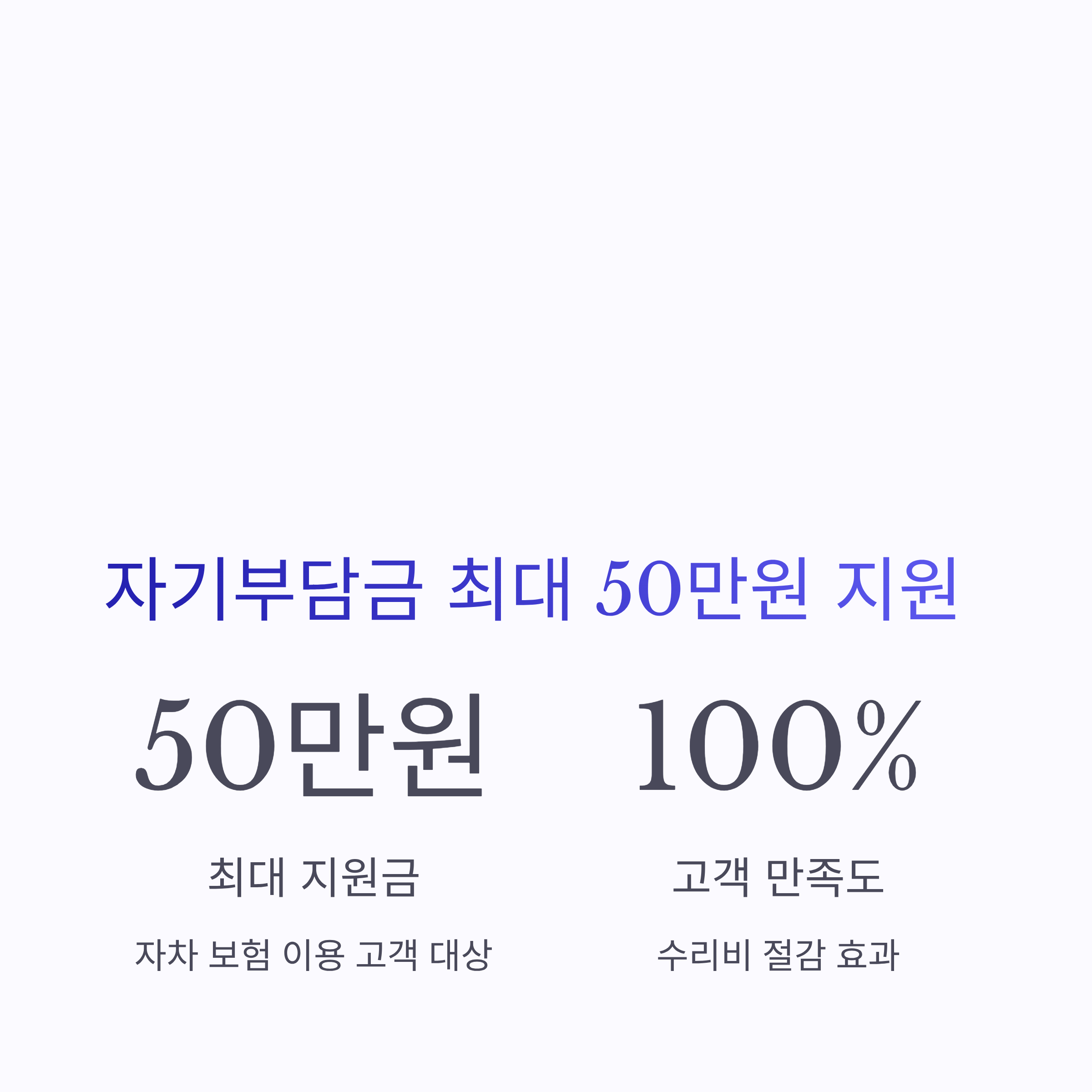 수리비 중 자기부담금(면책금) 최대 50만원까지 지원해드립니다.