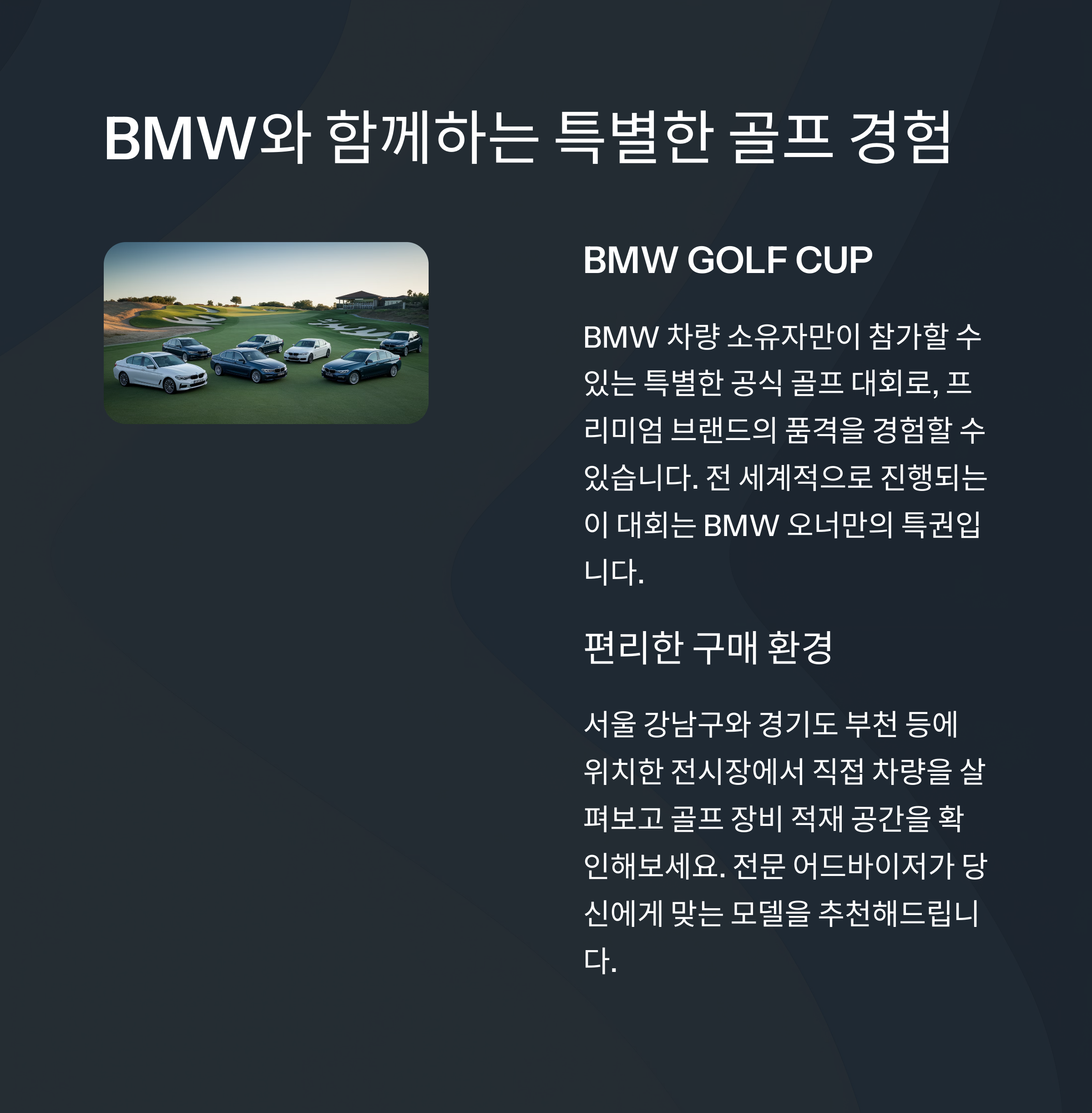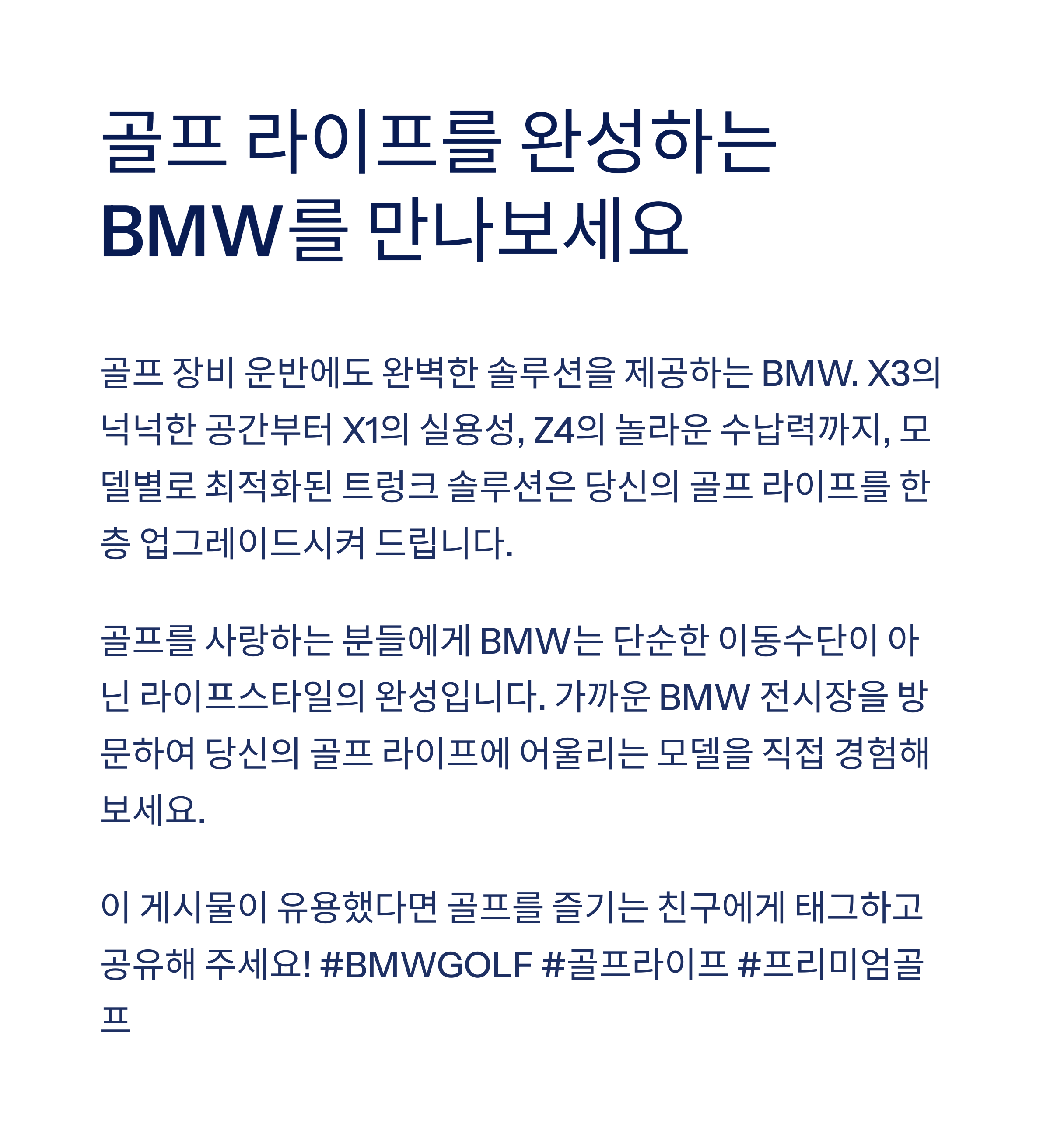 BMW SUV 및 스포츠카는 모두 골프족의 요구를 완벽히 충족합니다.
