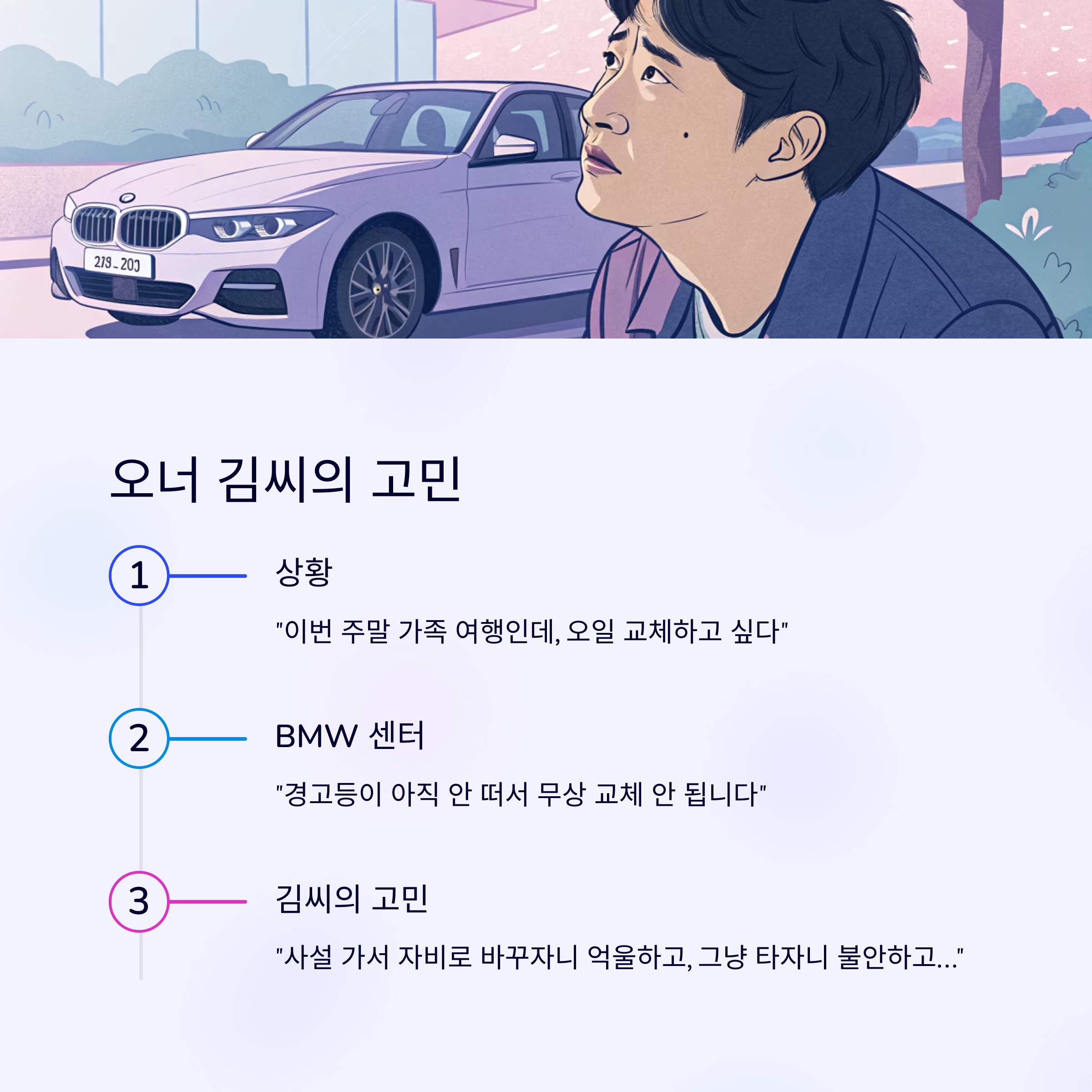 → 센터: "경고등이 아직 안 떠서 무상 교체 안 됩니다"