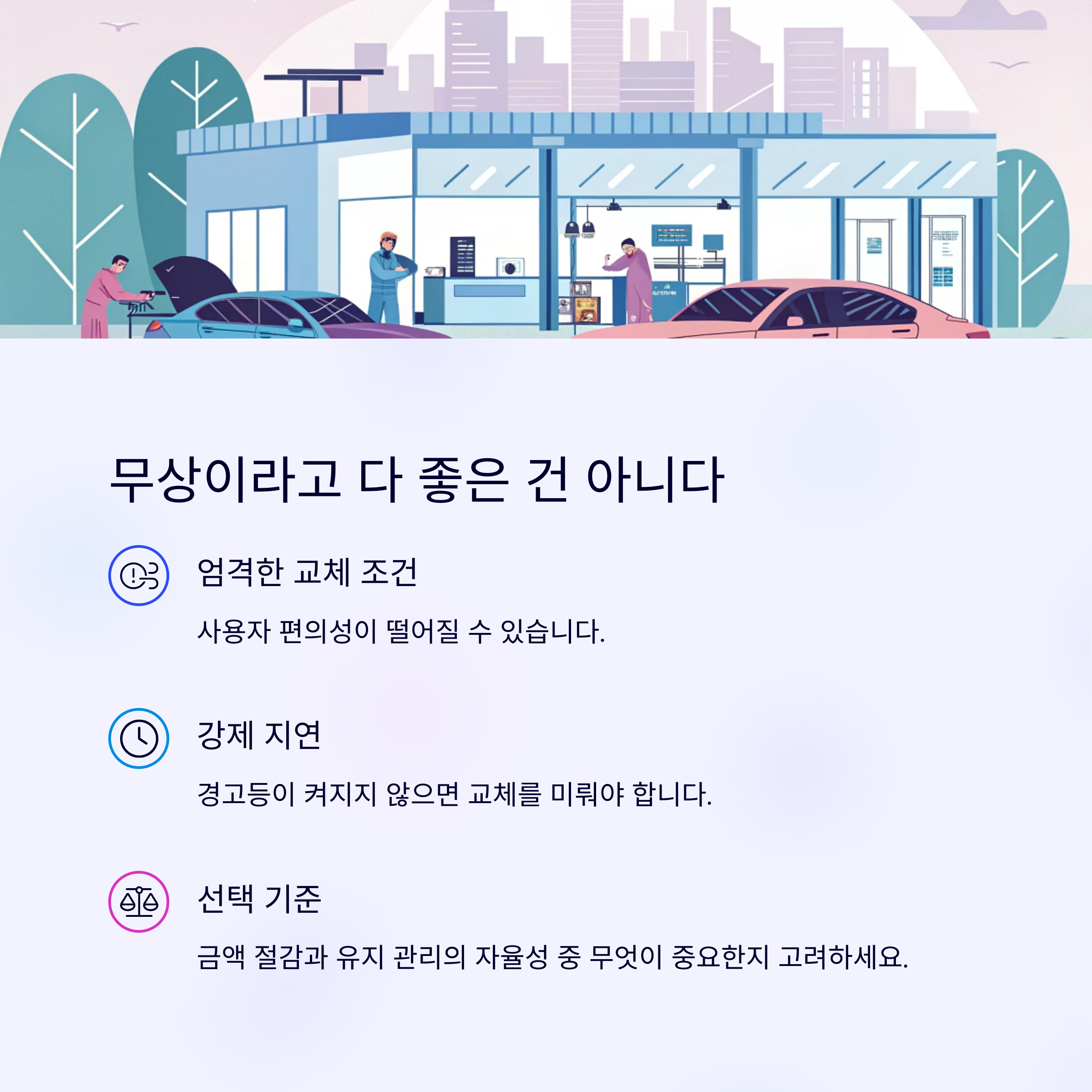 “운전자가 원하는 타이밍에 교체 가능”하다는 점에서 유연한 차량 관리가 가능합니다.