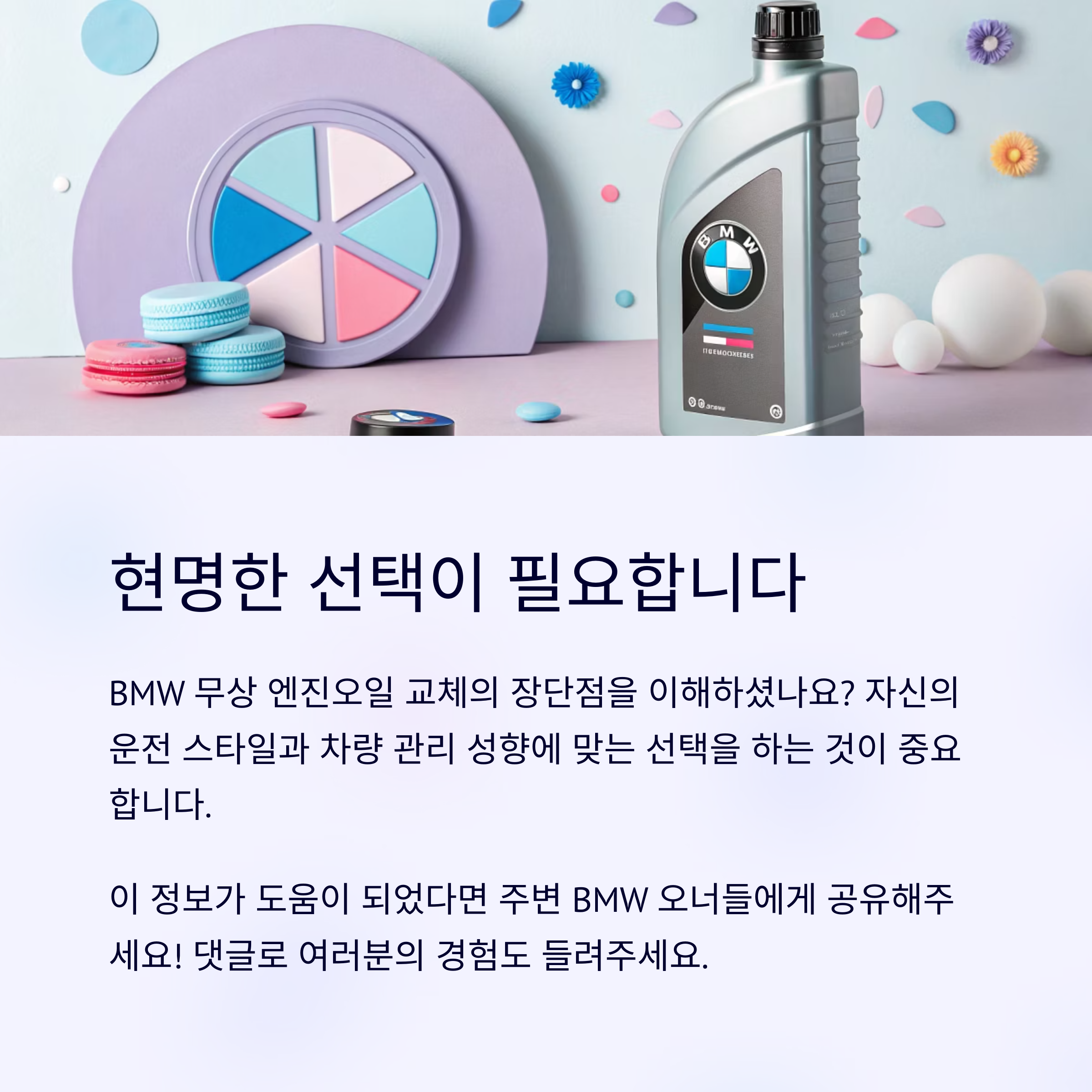중요 포인트: BMW는 연간 평균 1~2회 엔진오일 교체가 필요하므로,
