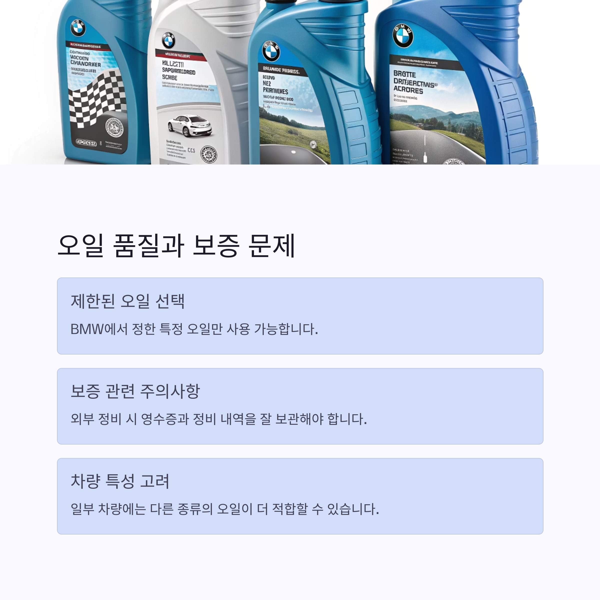 주의해야 할 점: 오일 품질과 보증 문제
