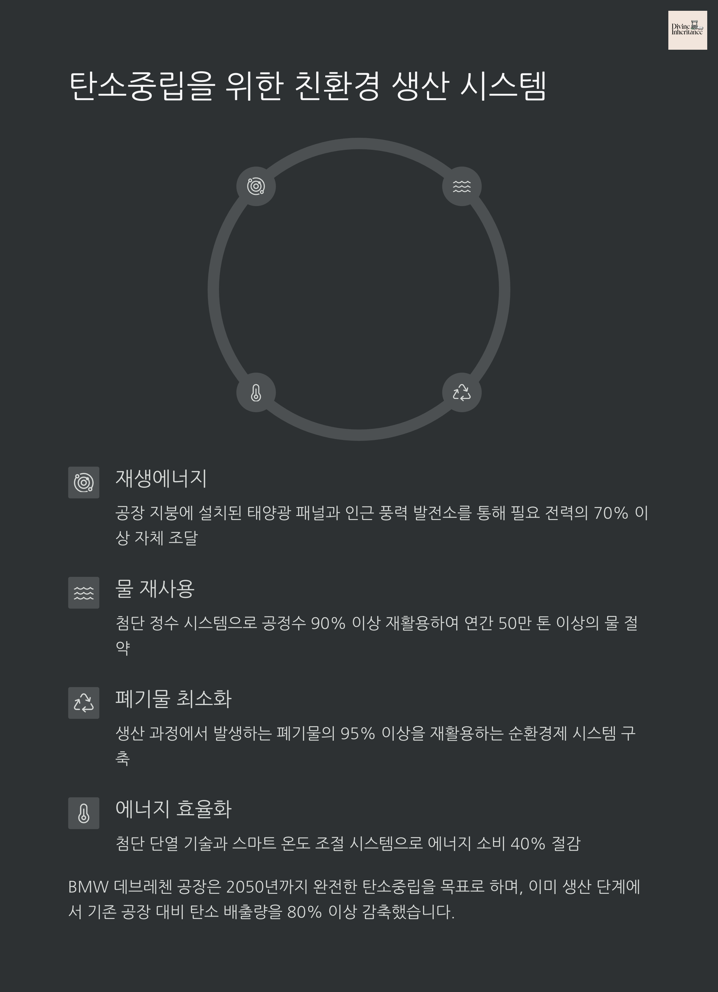 또한, 이 공장은 친환경적인 요소를 대거 반영한 것이 특징이다. 재생에너지 사용 비율을 높이고, 폐열 회수 시스템과 폐수 재활용 시스템을 도입하여 에너지 효율을 극대화하고 있다. 이는 탄소 중립을 선언한 BMW의 지속 가능성 전략과도 완전히 일치한다.