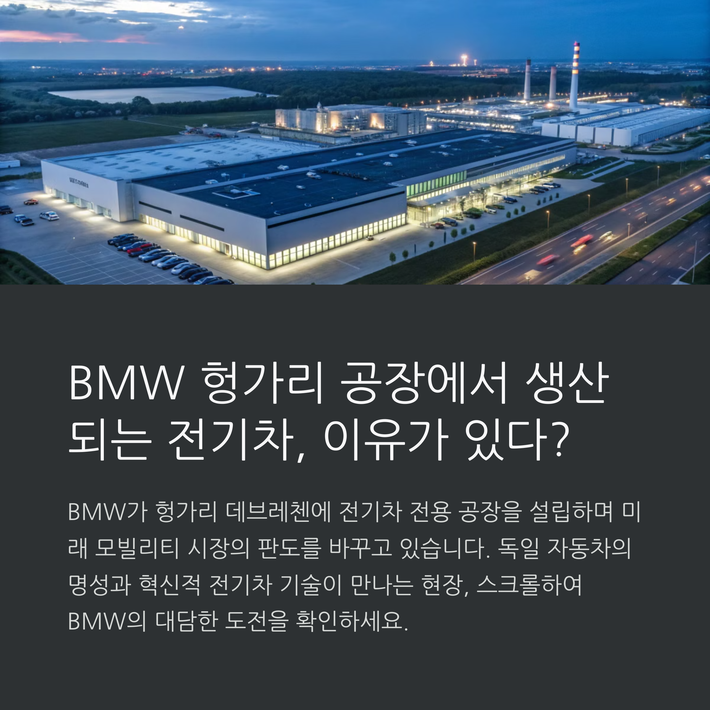 전기차 산업이 앞으로 더 커질수록, BMW와 헝가리 공장의 조합은 더 많은 기업들에게 새로운 방향을 제시하는 벤치마크가 될 것이다. BMW 헝가리 전기차 공장은 단순히 '이유가 있는 선택'이 아닌, 미래를 내다본 전략적 승부수임이 틀림없다.